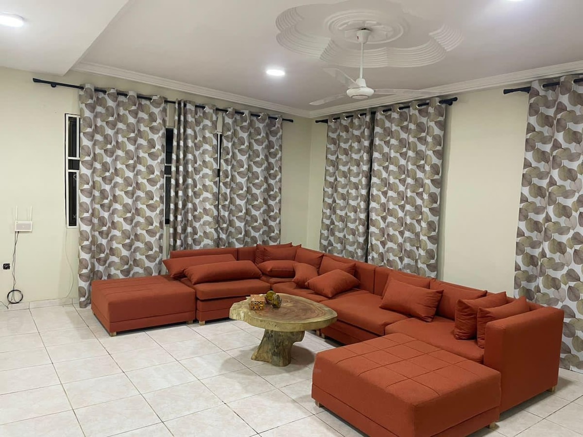 Goditi un'esperienza arricchente in questa lussuosa casa vicino all'aeroporto di Accra-Kotoka, ideale per famiglie e gruppi. La casa è completamente attrezzata con aria condizionata, cucina funzionale, letti super comodi, divano accogliente, sicurezza, Internet illimitato, DSTV, sistemi di intrattenimento e un generatore di backup da 66 kVA per il tuo comfort senza fine. La posizione è a 10 minuti di auto dall'aeroporto e nel raggio di 15 minuti da tutte le principali località di intrattenimento e affari della città, tra cui Labadi Beach, East Legon, Accra Mall, ristoranti e locali notturni famosi. Sarete accolti calorosamente