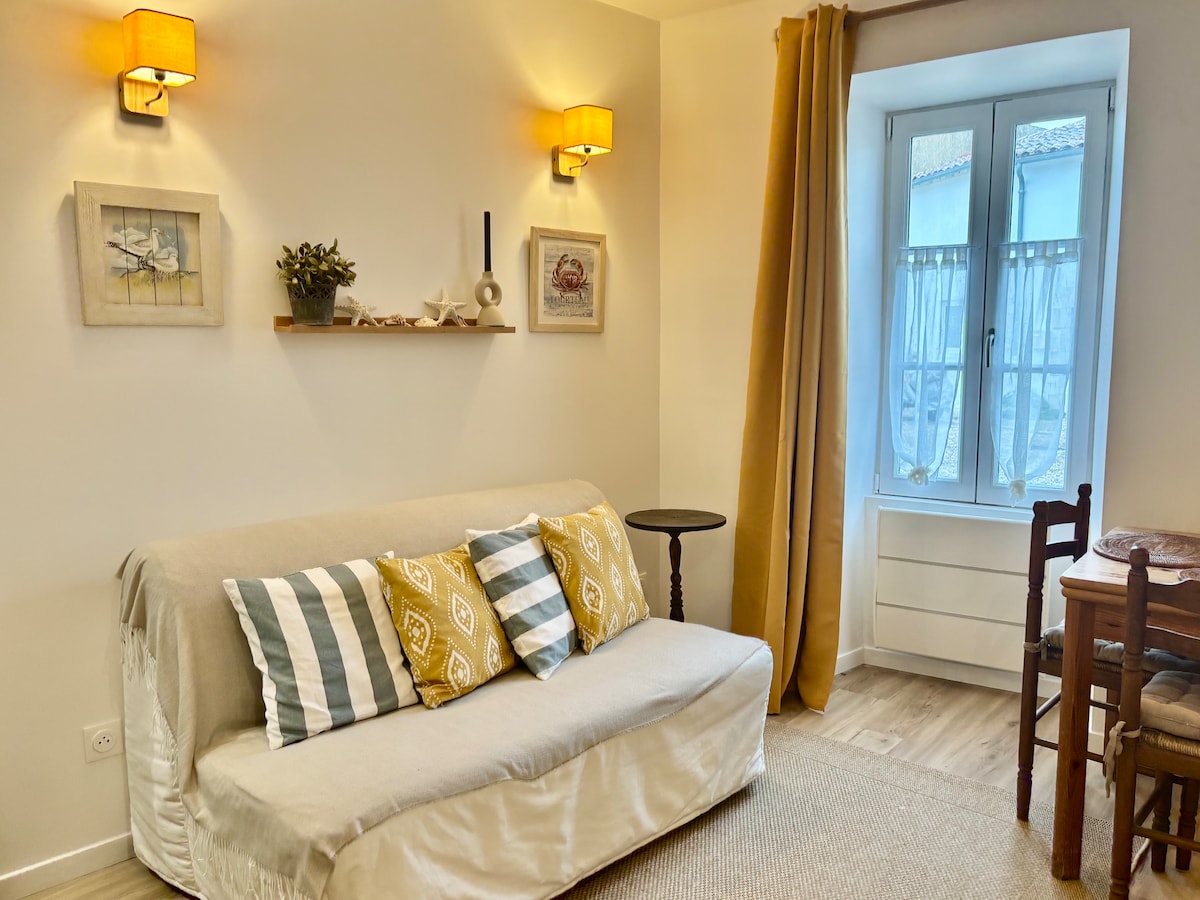 Immerso in un piccolo vicolo, questo 2 camere è situato in posizione ideale a La Flotte (vicino al porto, mercato giornaliero, e spiaggia). Situato al piano terra di una casa di paese, e completamente attrezzata per 2 persone ( biancheria fornita) . Si compone di un ingresso sul soggiorno/ soggiorno/ angolo cottura. Portafinestra su veneziana. Camera da letto, Doccia. WC separato. Il parcheggio (a pagamento in stagione) si trova a meno di 150 metri dall'alloggio. Troverete facilmente i noleggiatori di biciclette nelle vicinanze. A presto.