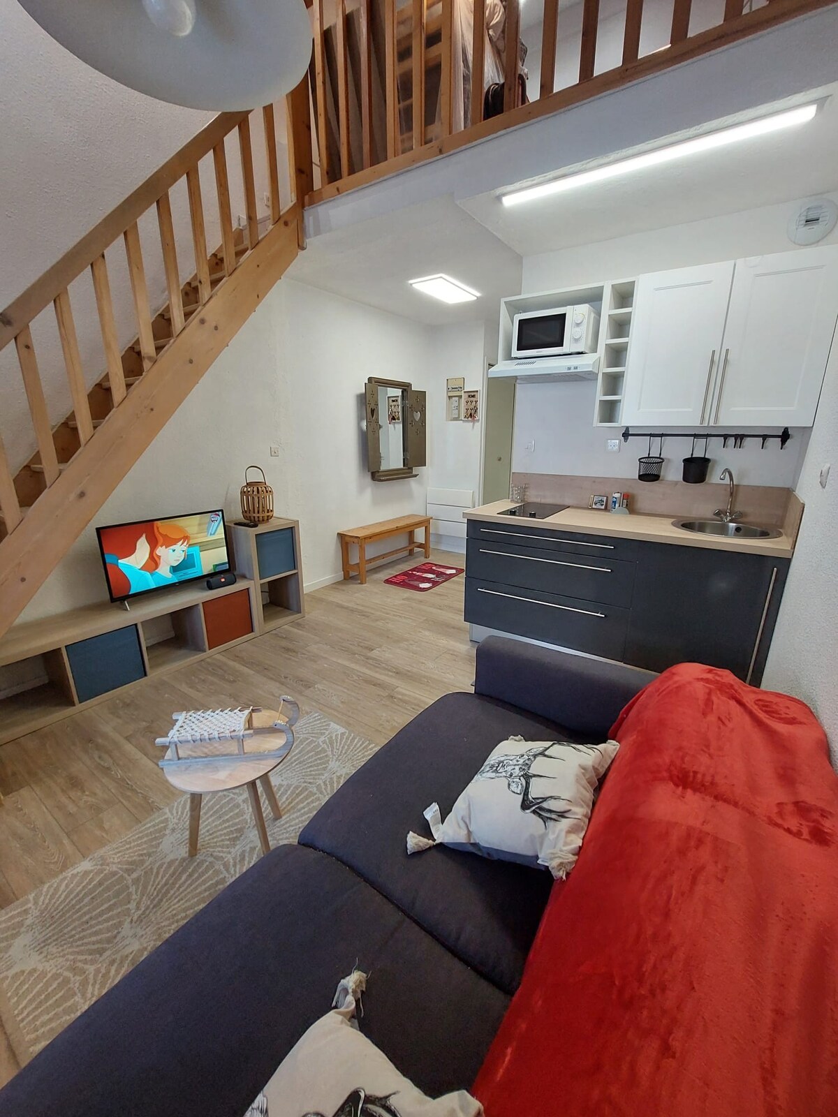Affitto bilocale soppalco 5 posti letto per settimana, fine settimana, ponti di maggio o novembre, vacanze scolastiche estate/ inverno e fuori stagione. L'intero soggiorno può essere fatto a piedi perché tutto è nelle vicinanze e navette gratuite di autobus con una fermata di fronte sono previste in stagione. Parcheggi gratuiti. Numerose escursioni con le racchette da neve, a piedi o in mountain bike disponibili. L'appartamento si trova accanto alla ludoteca, che vi permetterà di divertirvi con la famiglia o gli amici con i numerosi giochi che dispone.