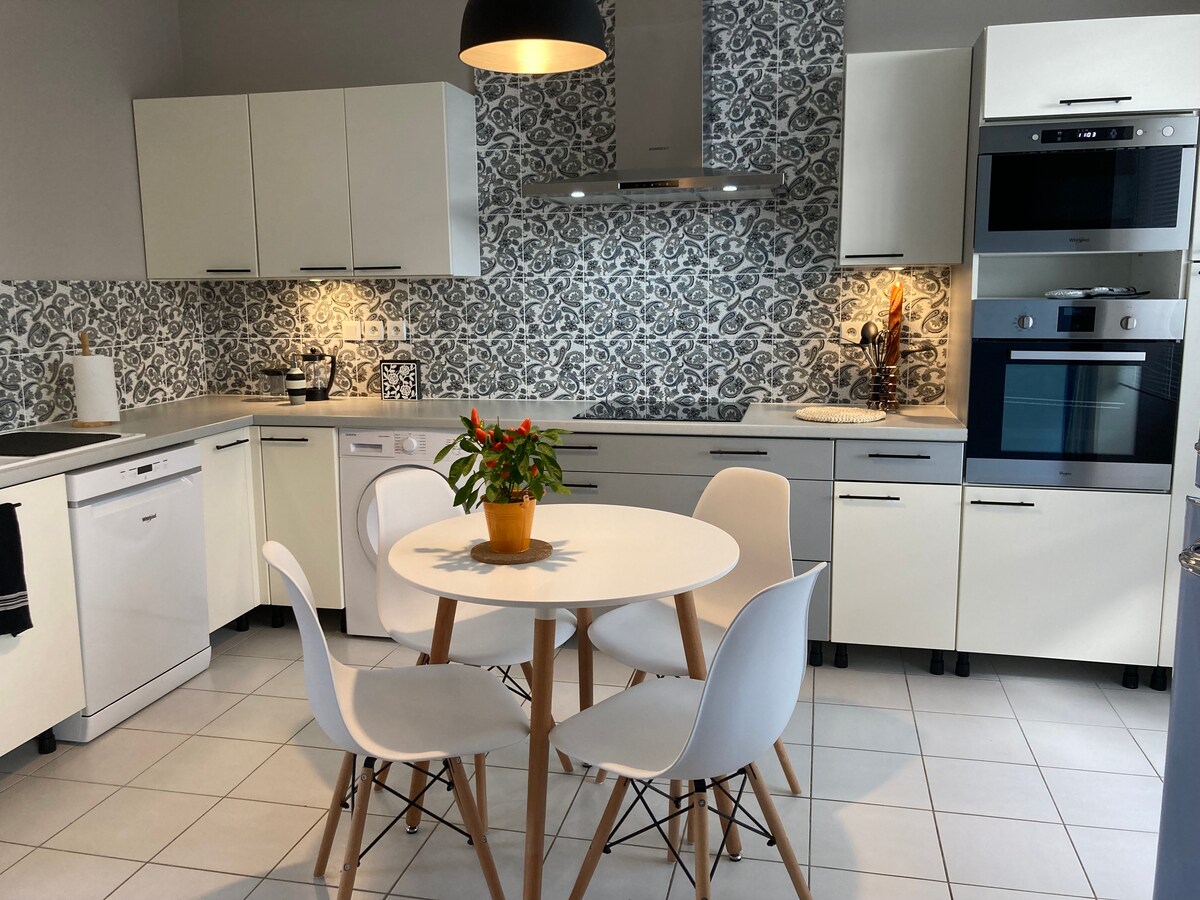 Ti diamo il benvenuto in un confortevole cottage in pietra e calce appena ristrutturato. Situato in un quartiere tranquillo, a soli 10 minuti a piedi dalla stazione ferroviaria e dai negozi del centro di Redon. Accogliente soggiorno con TV, cucina completamente attrezzata e bagno spazioso. Ampia camera da letto con letto matrimoniale, scrivania e angolo relax. Esterno: giardino, terrazzino e luminoso magra. WiFi in fibra ottica ad alta velocità. Biancheria da letto e asciugamani forniti. Su richiesta per il divano letto.