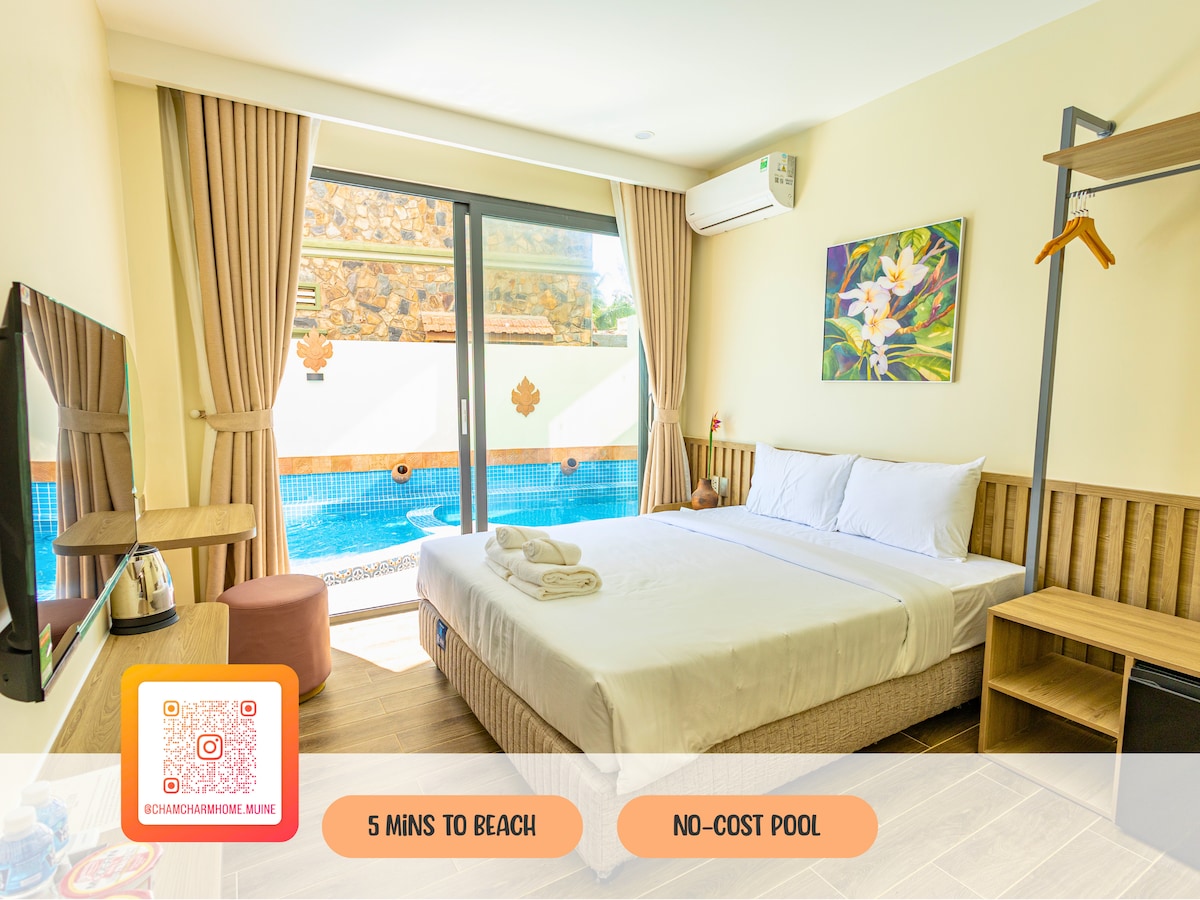 Ti do il benvenuto nella mia nuovissima casa tropicale a Phan Thiet - Dietro c'è il giardino, la spiaggia dove si può passeggiare e accanto c'è una caffetteria, un negozio di succhi di frutta - Ristorante e mercato locale, bancomat a 10' a piedi e a soli 10-15 minuti (moto/taxi) dal centro di Phan Thiet, porto, minimarket, food court - Noleggio biciclette e monopattini economici - Offriamo un servizio completo per il tuo viaggio: tour di un giorno (dune di sabbia bianca, antica torre Cham, pagoda,..), trasferimento dall'aeroporto/treno/stazione degli autobus e biglietti in tutto il Vietnam