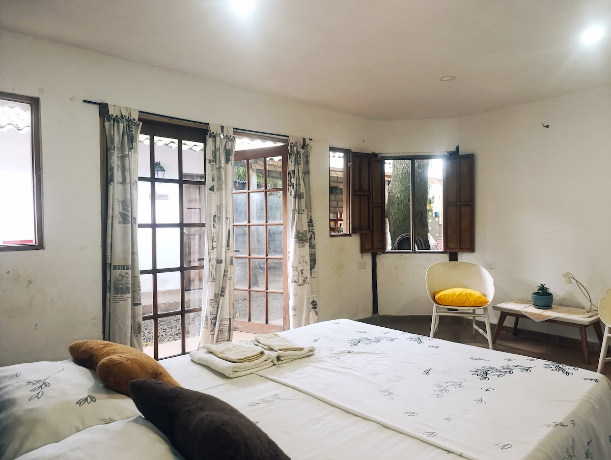Comodo appartamento (chiosco) in uno spazio naturale, tranquillo e perfetto per riposare. Con bagno e cucina privati, aree comuni come una piscina naturale, zona amache e spazi per studiare o lavorare. Alberi e piante diversi che ti offriranno un'esperienza unica. Vicinissimo alla strada principale e a soli 5 minuti dal centro. Il mio alloggio è adatto a coppie, avventurieri, nomadi digitali, famiglie (con bambini), gruppi numerosi e animali domestici.