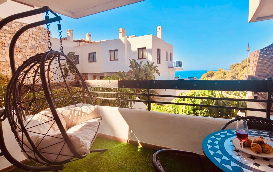 OFFERTE NOVEMBRE DICEMBRE Splendido attico monolocale open space, ristrutturato nel 2025. Vista sul mare e sulle montagne dalla grande terrazza soleggiata 3 m x 5,6 m. Situato in tranquilli giardini tropicali con passeggiate in montagna fuori dalla porta sul retro. A soli 10/15 minuti a piedi dalla spiaggia, a circa 1 km. Accesso gratuito alla piscina durante il soggiorno con il nostro pass piscina. e teli e sedie da spiaggia. Padel, tennis, palestra - 300 metri, tariffe da pagare in loco. SUP, kayak, windsurf e molti centri immersioni