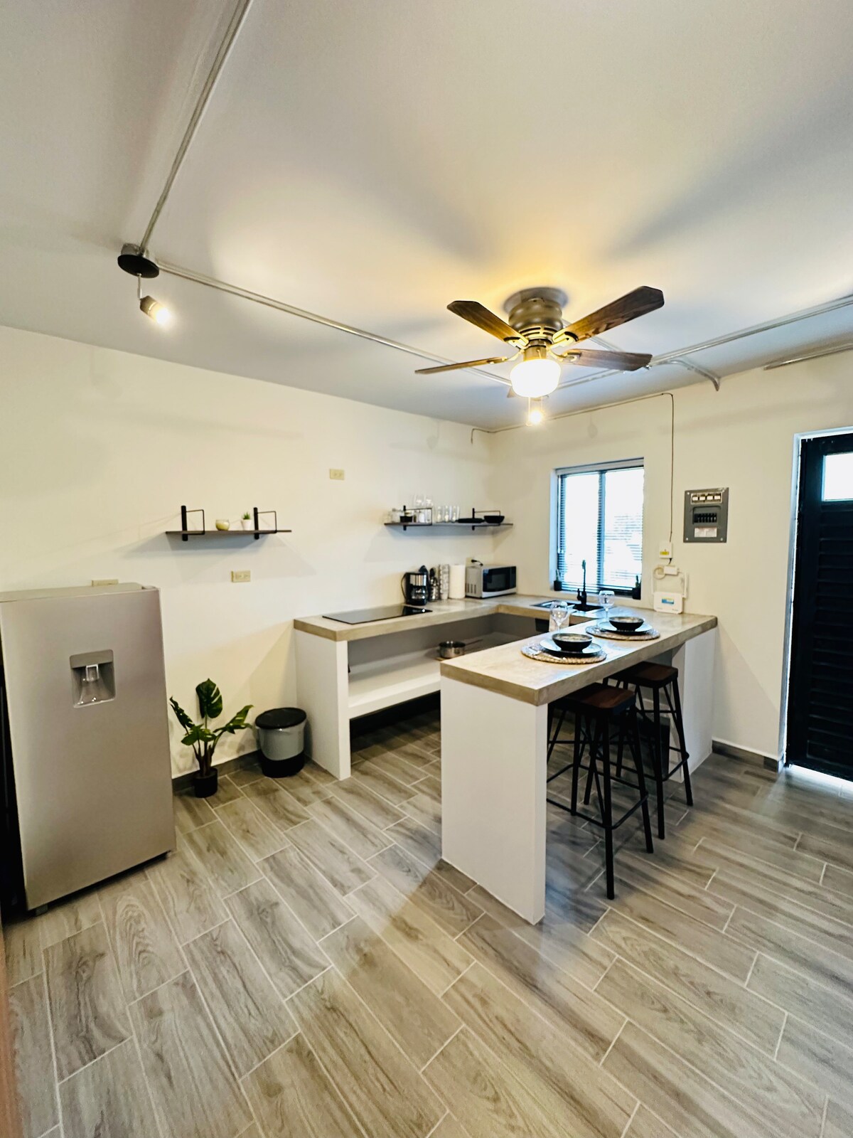 Hospédate en una zona segura y tranquila, con todo a pasos: frente a Farmacia Guadalajara 24 hrs, OXXO 24 hrs en la esquina y plaza comercial con restaurantes, panadería, UPS y FedEx. Conectividad ideal para trabajo o estancias largas: a 5 min de Fashion Mall, Distrito 1 y hospitales Ángeles y Star Médica; 8 min del Centro y 12 min de la estación del tren Chepe. Funcional, práctico y con tarifas muy competitivas en la zona.