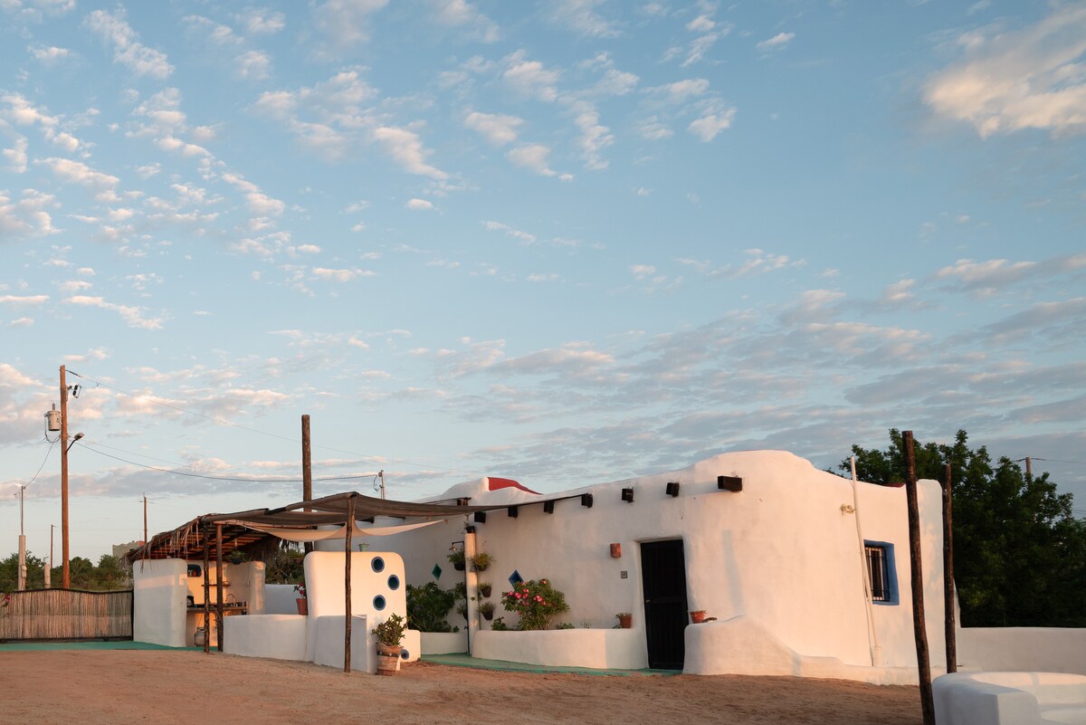 Joyita del Sur (Gioiello del Sud) è una casita privata a pochi passi da una splendida spiaggia sul mare di Cortez. Osserva sia il tramonto che l'alba dalla spiaggia! Letto a Q con materasso in schiuma e biancheria morbida. Aria condizionata e ventilatori a soffitto in camera da letto e cucina. Ampio armadio con ripiani/grucce. La cucina è dotata di fornelli, frigo, forno a microonde, tostapane, bollitore elettrico e tutti gli utensili. A 20 minuti di auto dalla città su una strada accidentata, quindi si consiglia un'auto a noleggio. 2024 4 posti in affitto, vedi "altre" foto.