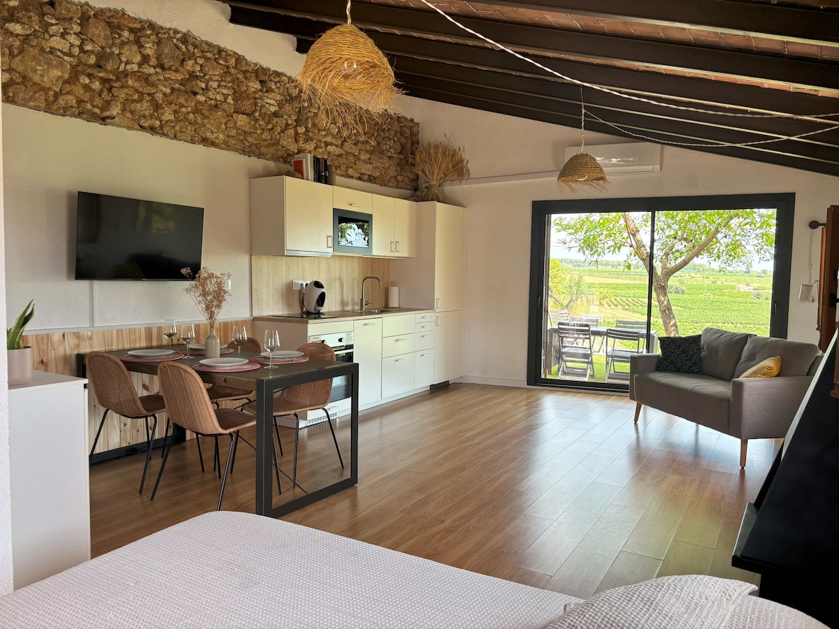 Ubicado en el corazón del Penedés, este precioso apartamento ofrece una experiencia única, rodeado de viñedos y naturaleza. A solo 10 km de Vilafranca del Penedés, a 30 min. de Sitges y a 50 min. de Barcelona en coche. Es ideal para disfrutar de la gastronomía local y las bodegas. El apartamento de 60 metros cuadrados cuenta con una sala cálida y luminosa con estufa de leña, cocina office, una suite matrimonial con baño incorporado y un altillo con dos camas adicionales individuales.