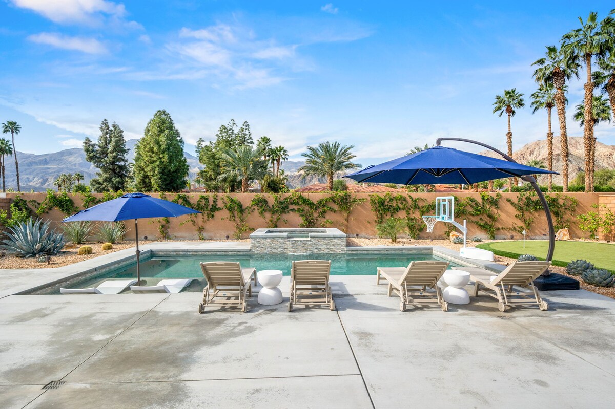 Look no further, HPH is the perfect place for your relaxing spring getaway. Get out of the snow and enjoy the warm desert weather. 🎾This home is a short drive or walk to the tennis tournament🏟️ ⚡️EV charger installed and free for guest use ⚡️ Pool heating available upon request. At the base of the Santa Rosa mountains HPH provides a relaxing space the entire family can enjoy. The expansive backyard features a large pool, fire pit, bocce court, putting green, TV and multiple lounging areas.