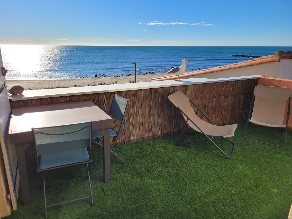 RISTRUTTURAZIONE COMPLETA 23 Vista mozzafiato sul mare e sulla spiaggia... Dalla terrazza in legno, potrai fare colazione all'alba di fronte al mare, fare un pisolino sul divano o sorseggiare un aperitivo e goderti il tramonto. Situato al 3° piano (con ascensore) del residence Héliopolis, questo monolocale è completamente attrezzato (aria condizionata, letto 160x200, molto spazio per riporre le proprie cose, bagno, WC separato e angolo cottura). Vengono forniti la biancheria da letto e gli asciugamani, il wifi e un posto auto privato.