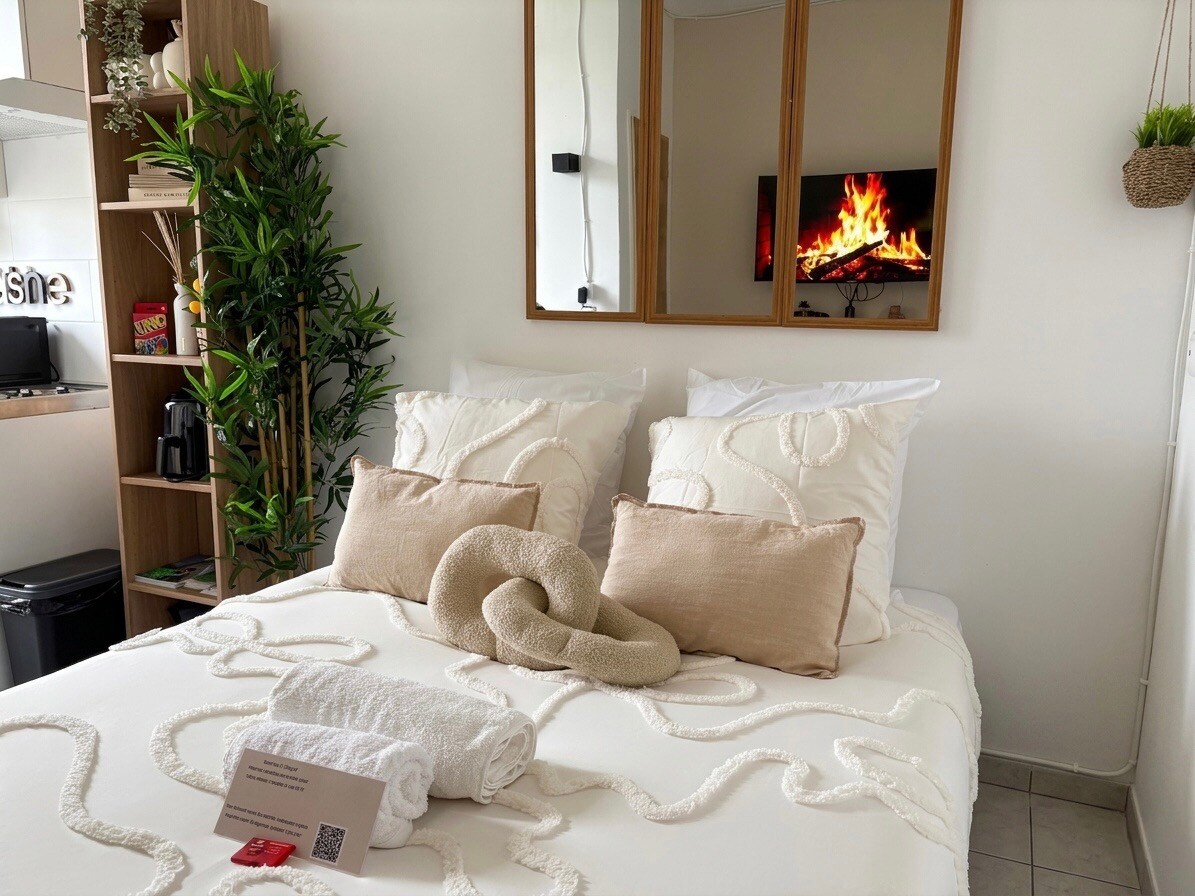 🎖 Posizione eccezionale nel centro della città di Talaudière. Il COSY è il monolocale ideale per un soggiorno ben riuscito a La Talaudière: vicino al centro della città, ai piccoli negozi! L'alloggio si trova a 20 minuti dal centro della città di Saint-Etienne. Il COSY è un appartamento nuovo di zecca ed è stato progettato per il massimo comfort dei viaggiatori