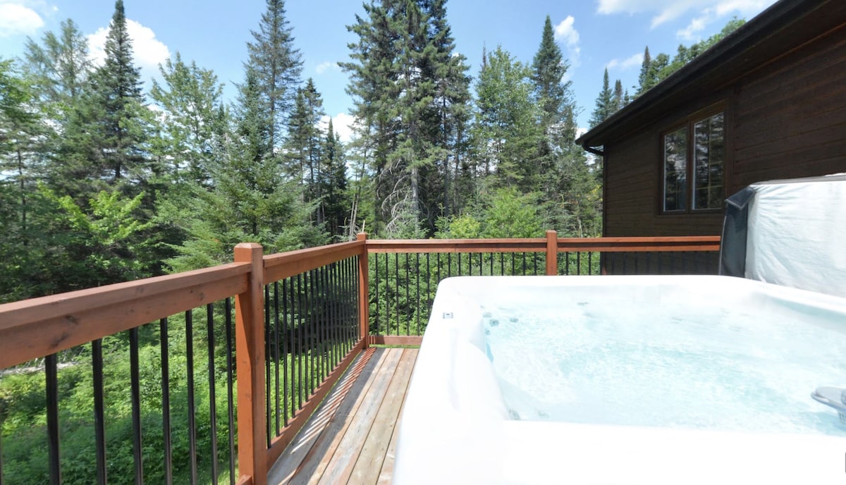 Profitez de l'effet apaisant de la nature en séjournant dans ce chalet contemporain à fenestration abondante en plein coeur de la forêt. Tremblant est magnifique, peu importe la saison. Destination plein air de rêve, vous serez à 8 minutes du Mont-Blanc et 20 minutes du Mont Tremblant. Que ce soit pour la randonnée, le ski de fonds, la raquette ou la motoneige, des sentiers sont accessibles facilement dans toutes les directions. Sans oublier le célèbre P'tit Train du Nord à 3 minutes de route.