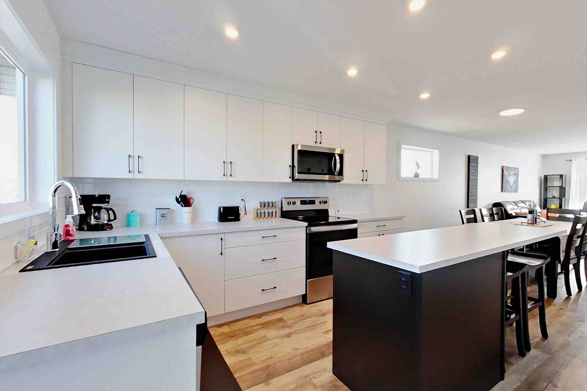 Questa casa recentemente ristrutturata è perfetta per una famiglia o un gruppo in viaggio, e vanta 149 metri quadrati di spazio per divertirsi, tra cui due salotti e un cortile completamente recintato. Siamo situati in posizione unica a soli cinque minuti dalla spiaggia di giorno, e offriamo un rifugio tranquillo lontano dalla folla di notte. Comodamente fuori dall'autostrada 11 e a pochi isolati da negozi, ristoranti, parchi e cinema. Vuoi esplorare la regione centrale dell'Alberta? Siamo a 12 minuti da Red Deer e a 20 minuti da Lacombe. STAR-04381