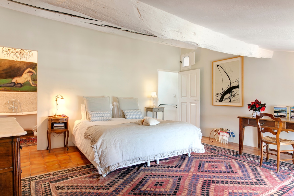 Questa casa colonica del XIX secolo tra i vicoli e i vigneti di Bonnieux offre l'autentica Provenza. Svegliati con l'aroma dell'espresso sulla terrazza con vista sui vigneti, poi passeggia per gustare croissant caldi mentre le campane suonano. Le storiche pareti in pietra e le travi in rovere si fondono con una cucina rustica e biancheria da letto francese. Le giornate sono dedicate a visite al mercato, esplorazioni di cantine e degustazioni di vini al tramonto sotto le stelle. I ciliegi in fiore in primavera e i campi di lavanda in estate completano il fascino stagionale. A soli 5 minuti dalle panetterie del villaggio, ma tranquillamente appartato.