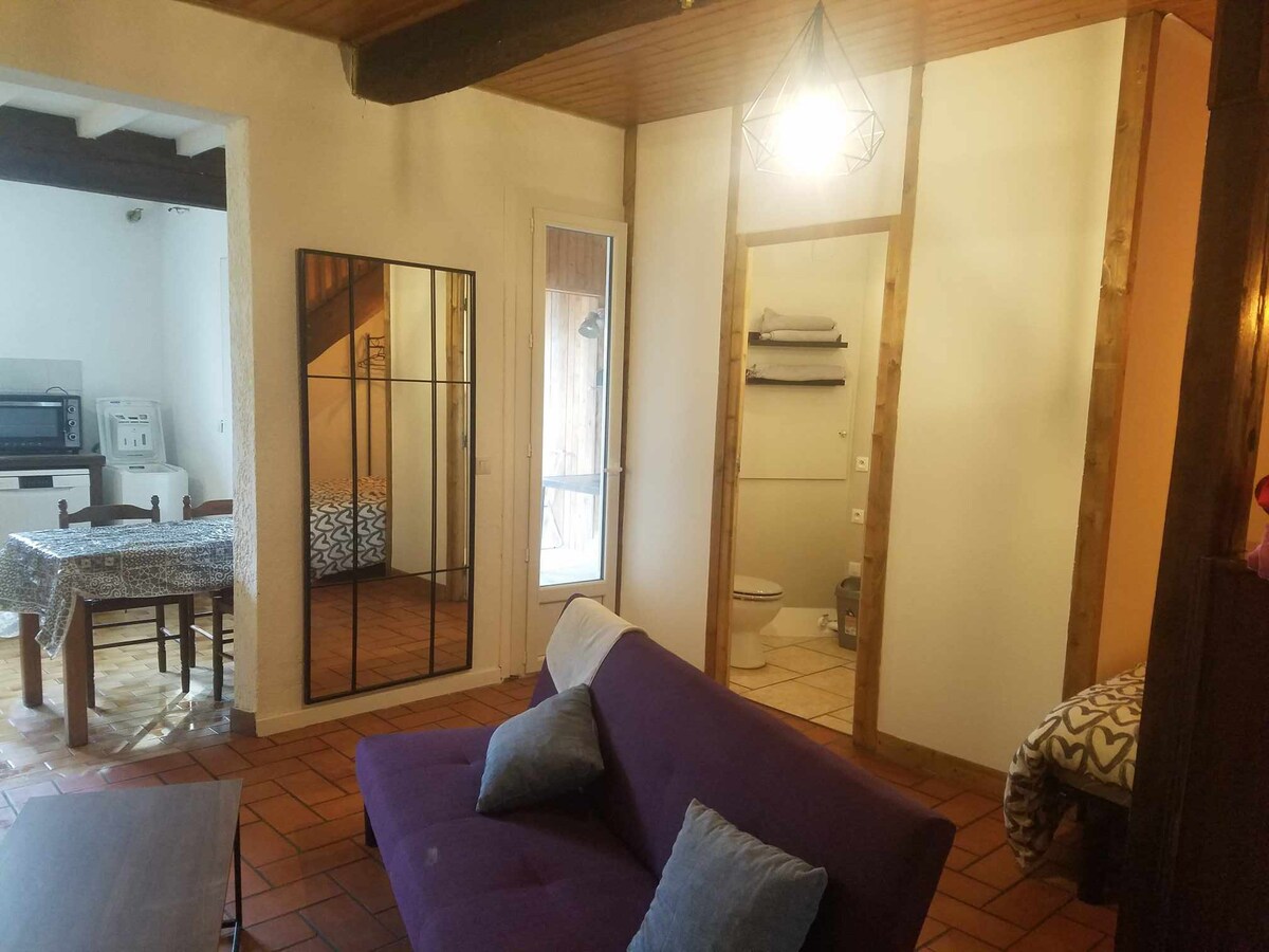 petit studio tout équipé ( cuisine, salle de bain, clim,télé ).le studio se trouve dans une maison de village à proximité de toutes commodités ( train,autoroute, supermarché.) le logement comprend un grand lit pour 2 personnes ainsi qu 'un lit d ' appointsi nécessaire. Le calme et la tranquillité sont les maitres mots de cette maison. L' accès au logement est libre peu importe votre heure d'arrivée. idéal pour un long ou court séjour.