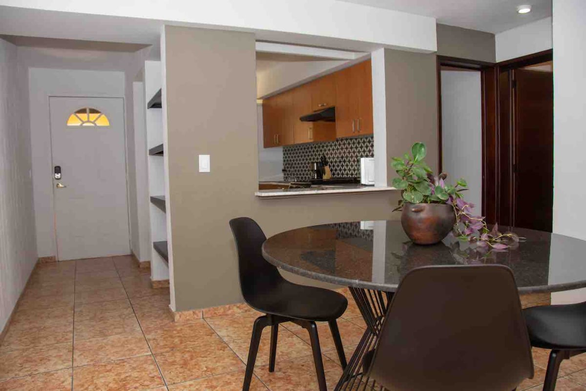 Depa P'ukuri ti offre uno spazio unico dove potrai vivere la vita regionale in modo unico, circondato da artigianato e mobili realizzati da mani michoacane. Oltre a offrire uno spazio accogliente per riposare, la sua posizione in una zona centrale ti permetterà di godere dei principali punti di interesse turistico, gastronomico e culturale. L'appartamento dispone di due camere spaziose e luminose, bagno completo, cucina attrezzata, soggiorno, sala da pranzo e lavanderia.
