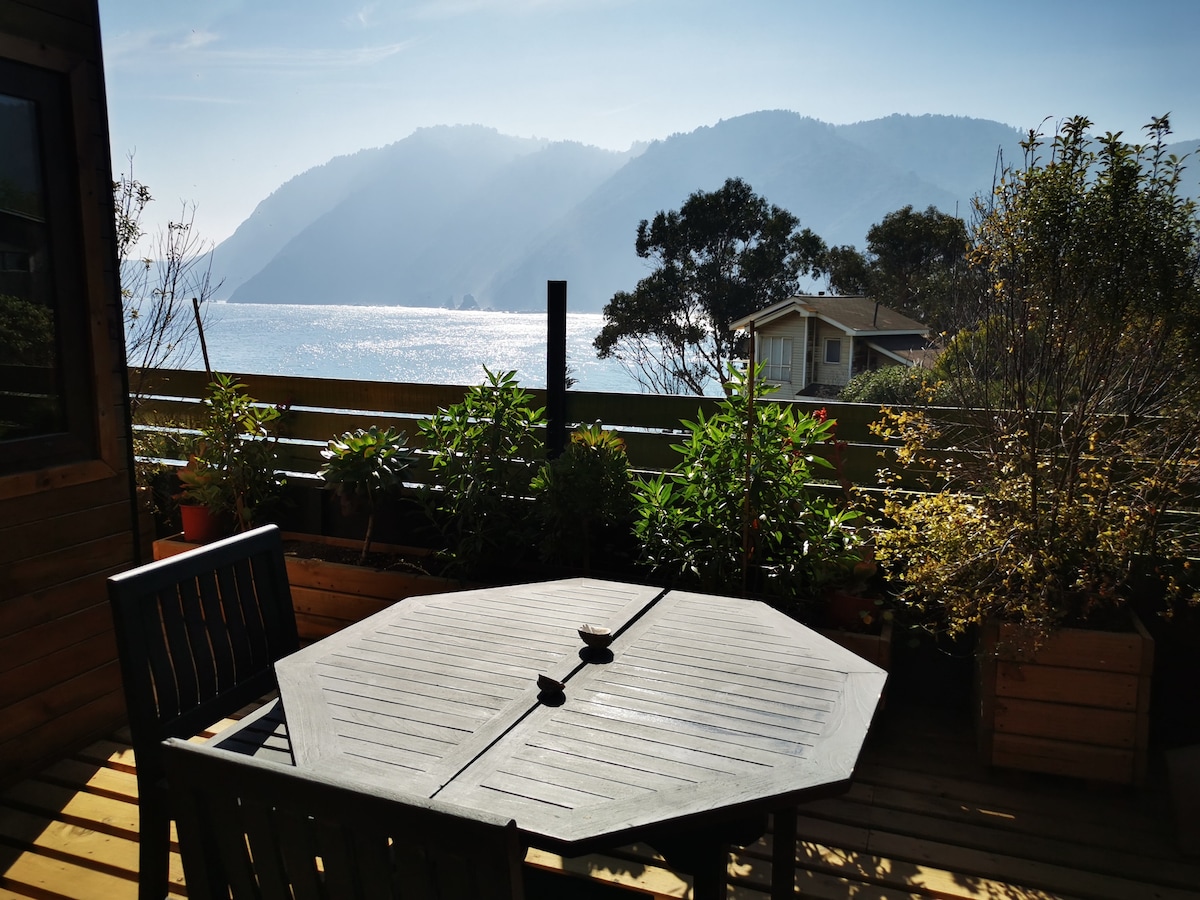 Percorrendo le strade polverose del villaggio di pescatori di Quintay, ti imbatterai in "The Studio". Situato in cima a una scogliera con vista sull'Oceano Pacifico, sulle colline di Curauma e sulla Caleta di Quintay. L'intimo monolocale indipendente può ospitare due persone e dispone di cucina completamente attrezzata, bagno, letto matrimoniale, soggiorno e zona pranzo. Sono forniti lenzuola e asciugamani. Avrai a disposizione una terrazza privata con vista sull'oceano, dove potrai mangiare all'aperto e ammirare tramonti spettacolari.