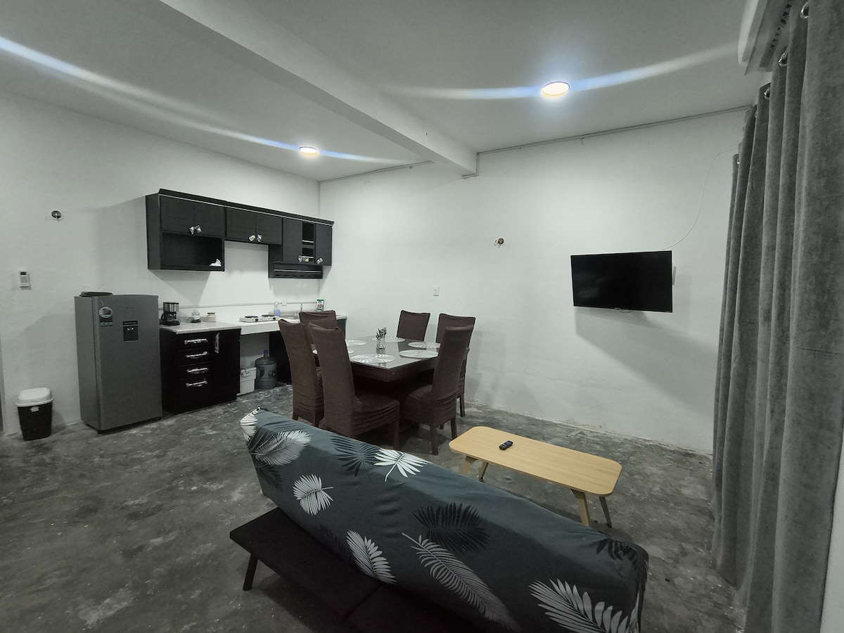 Cozy 1BR Apartment – Safe & Convenient Bright ground-floor unit in a quiet gated community. Perfect for solo travelers or couples. Walking distance to Pemex Hospital & Police Academy. Features: ✔ Fully equipped kitchen ✔ Strong Wi-Fi & workspace ✔ Covered parking (fits 1 car) ✔ Easy street access Ideal for medical visits, business, or short stays. A comfy, hassle-free retreat!