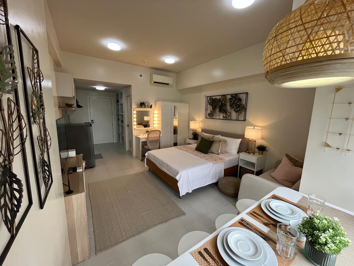 Kamusta! Siamo Jade e Sheryl, e ci piacerebbe darti il benvenuto nel nostro moderno monolocale Acqua. È un posto tranquillo direttamente di fronte al ponte Estrella-Pantaleon, vicino ai caffè chic, ai ristoranti e al centro commerciale Power Plant di Rockwell. Rilassati su un letto queen-size, cucina in una cucina completamente attrezzata, guarda in streaming su una smart TV da 50" con Netflix e Prime e lavora o gioca con la connessione Wi-Fi veloce a 400 Mbps. Avrai anche accesso alle piscine e ai giardini rinfrescanti di Acqua, alla palestra sul tetto, ai comodi negozi e alla tranquillità con sicurezza 24 ore su 24.