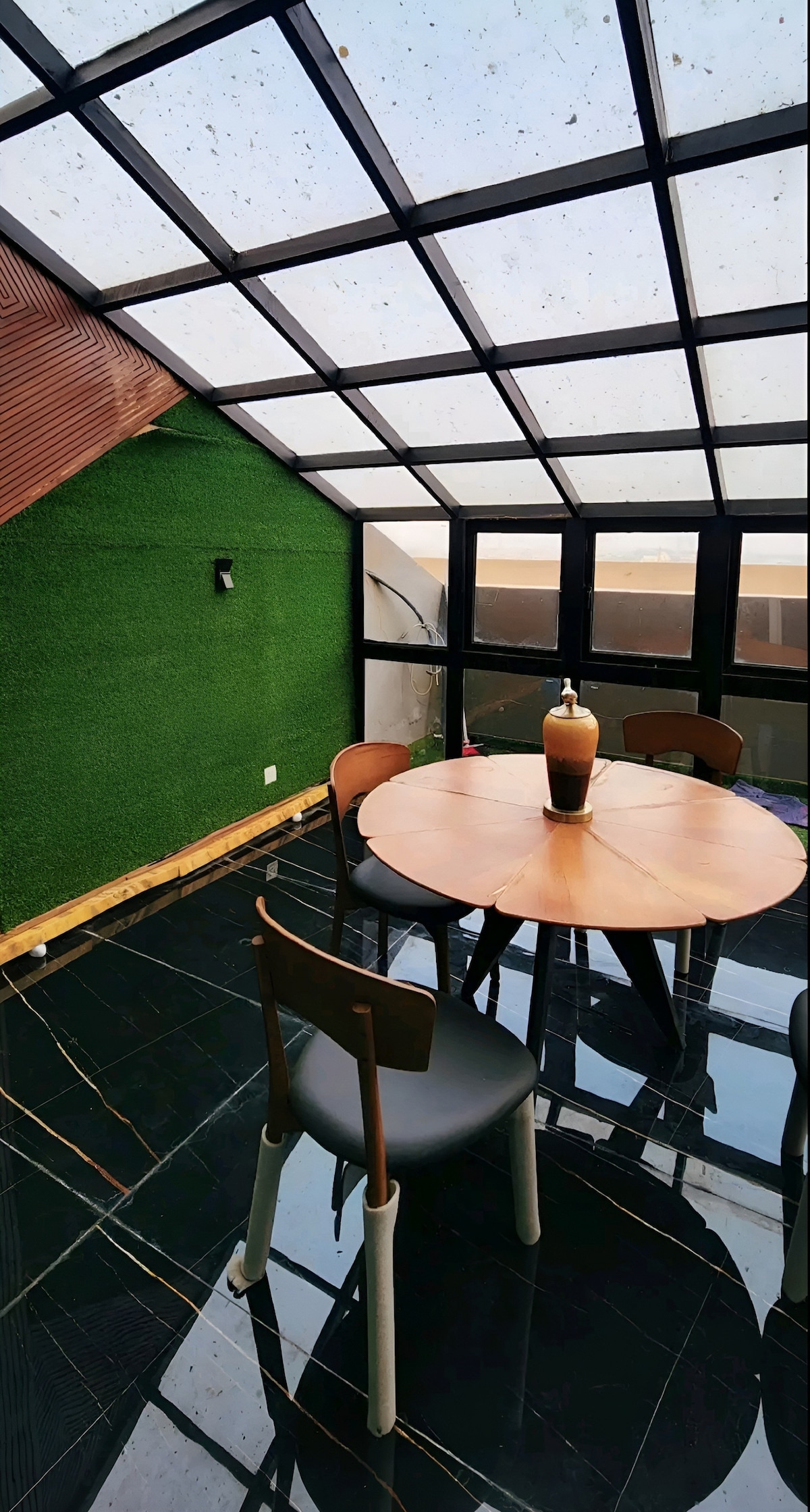 Il nostro attico Orbit con 1 camera da letto e cucina a DHA Phase 5 è il luogo in cui l'eleganza urbana incontra la bellezza celestiale. Ad esempio: una parete con la luna luminosa per i selfie a tarda notte e un'opera d'arte con una pila di dollari che grida "energia da protagonista". Svegliati con vista sul parco dall'altalena del tuo balcone privato, goditi i tuoi programmi preferiti sulla Smart TV 4K da 50" o cucina qualcosa di estetico nella cucina di design completamente attrezzata. Gli interni? Astratti, eleganti e fatti per il feed. Inoltre, sei proprio accanto ai ristoranti più in voga di Lahore.