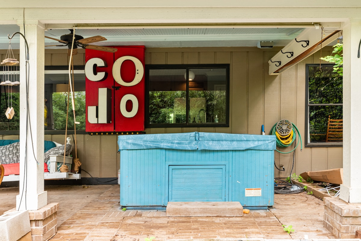 Bellissima casa su 2 acri lungo Walnut Creek, appena fuori Austin! Rilassati a bordo piscina, gioca, osserva gli uccelli o fai un pisolino all'ombra. I nostri alberi ad alto fusto e il prato paesaggistico offrono una tranquilla privacy. Il sogno di un amante della natura con facile accesso alla città, adatto a Uber e Lyft. Scopri il paese e la città, tutto in un unico soggiorno! Spazi interni accoglienti, pranzi all'aperto e tanto spazio per muoversi: perfetto per famiglie, incontri tra amici o una tranquilla vacanza in solitaria.