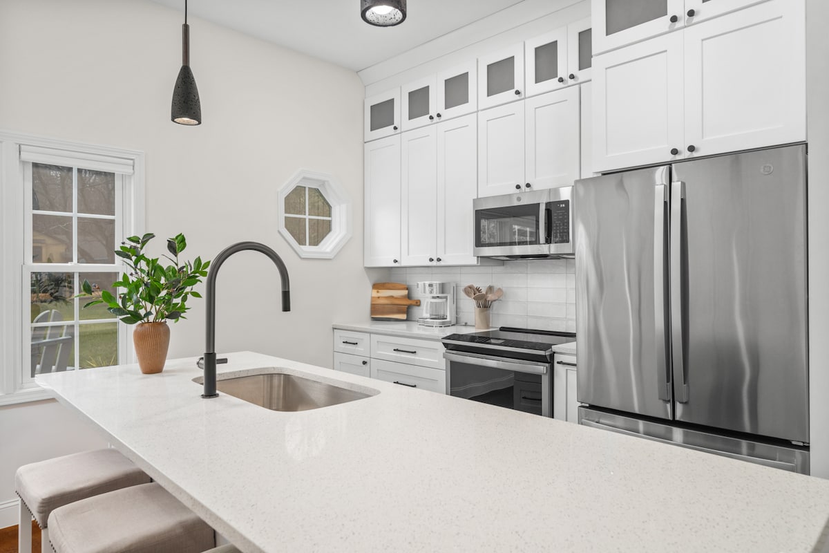 Soggiorna nel centro di Cary nella nostra casa accogliente ma elegante, così vicina a tutto che è ridicolo! Rilassati sul nostro divano e guarda i tuoi programmi preferiti sulla TV a cornice che funge anche da opera d'arte. Abbiamo fibre per tutte le tue esigenze di streaming e di lavoro. L'interior design è qualcosa che amiamo, ma l'ospitalità è la nostra vera passione. Vogliamo che tu ti senta come in famiglia. Qualunque cosa ti serva, siamo qui per te! **Addebitiamo un costo separato di 30 USD per animale domestico/notte DOPO la prenotazione. 🐩 Consulta le regole della casa per maggiori informazioni.