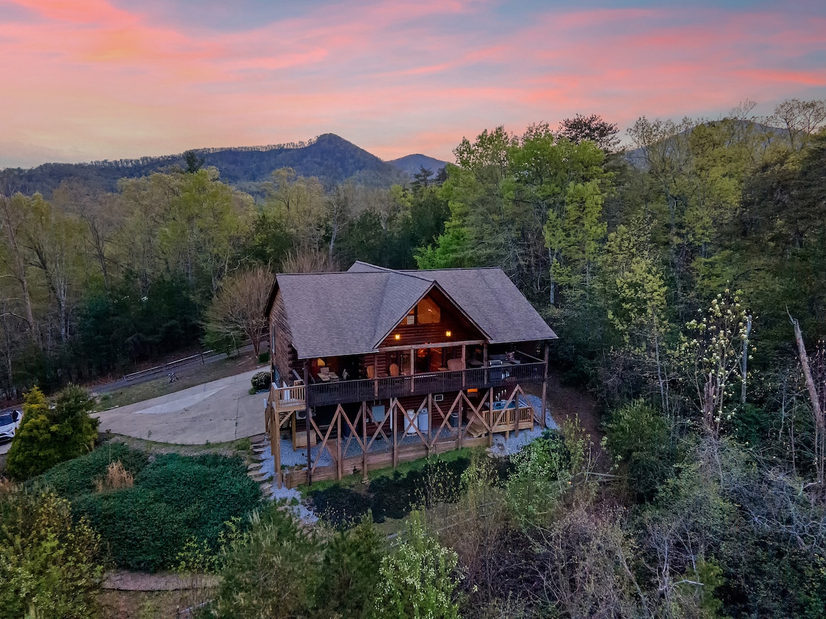 Rifugio di lusso in cima alla collina con vasca idromassaggio e focolare scoppiettante. 3 suite con letto king size, 1 camera da letto con letto queen size, 1 futon queen size, cucina professionale, 10 posti letto. Le famiglie adorano il tavolo da biliardo, i giochi da tavolo e l'ampio cortile che i bambini possono esplorare. Seggiolone e lettino sono pronti per i più piccoli! A pochi minuti da sentieri escursionistici e ristoranti locali, torna a casa per gustare degli s'mores intorno al fuoco al tramonto. Prenota ora per assicurarti le date! Chimney Rock e il Chimney Rock State Park sono APERTI! Il lago sarà di nuovo aperto a maggio 2026!
