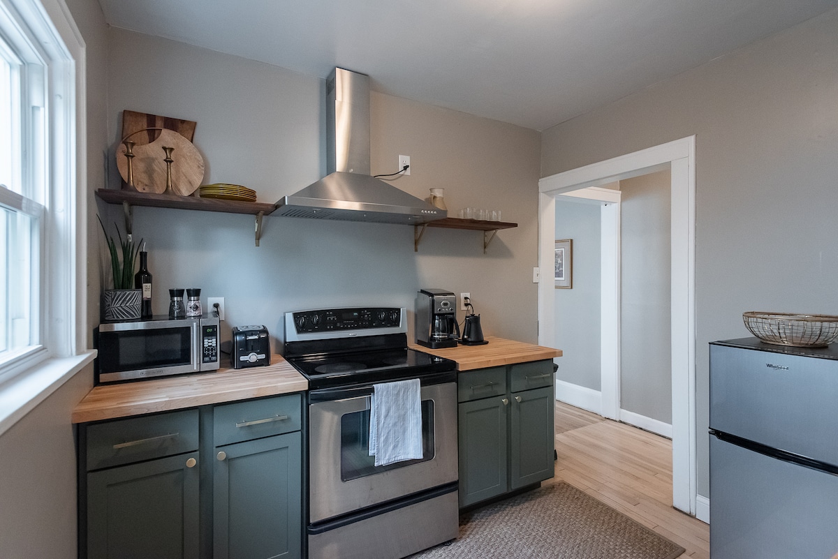 Il Sibley Loft è un grazioso appartamento con un letto e un bagno al secondo piano della nostra casa di famiglia. La struttura è stata costruita nel 1921 e conserva alcune delle caratteristiche originali. Lo spazio comprende un soggiorno, un bagno con vasca a piedini, una piccola area ufficio, una cucina e un patio. Gli ospiti hanno un proprio ingresso indipendente e parcheggio in strada. Ci troviamo nel quartiere di Standish, vicino a molti ristoranti, negozi e altro ancora. L'aeroporto è a 20 minuti di auto e il centro di MN è a 15 minuti.