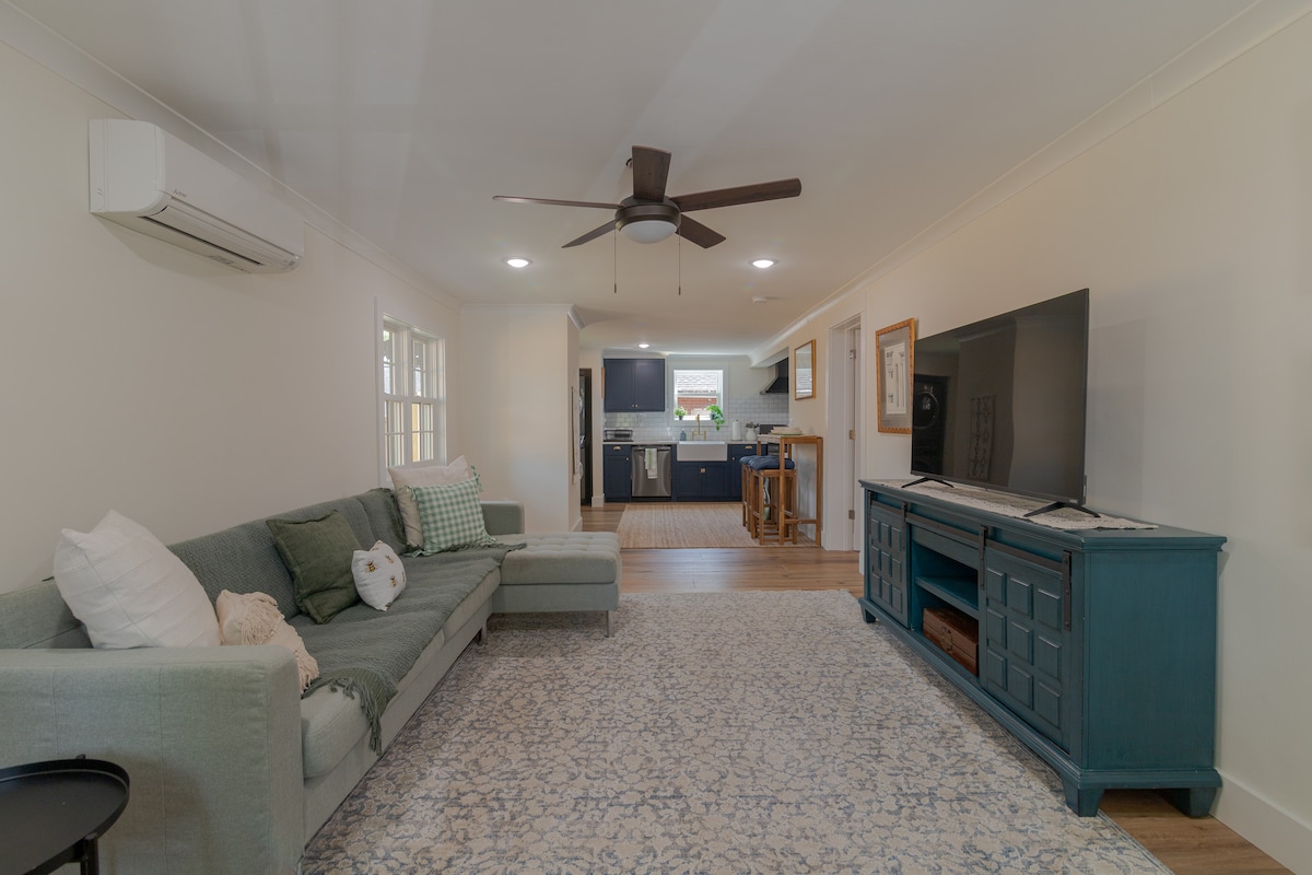 Take it easy at this unique and tranquil getaway. Tastefully designed cottage a few blocks from restaurants, bars and shopping in downtown Columbus, and in walking distance (10 min by foot) from Synovus Park, yet far enough for a peaceful and quiet retreat. The home offers everything you need for a weekend getaway or a multi-month deployment. Chattahoochee Riverwalk and the Civic Center are just two blocks away. Few minutes drive to Fort Benning. All artwork is from local artists.