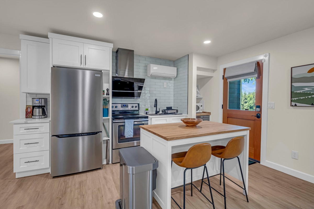 Fuggi nel bosco e goditi un romantico rifugio appartato al Cedar Hollow. Immersa nella foresta ricoperta di muschio delle Cascade Mountains, la casa ti offre un'esperienza rilassante e rigenerante. Puoi rilassarti nella sauna a botte, fare un tuffo nella piscina fredda o immergerti nella vasca idromassaggio circondato dalla natura. Potrai anche goderti la vista dall'ampio patio, cucinare i tuoi pasti preferiti o rilassarti vicino al focolare. Questa è la fuga perfetta per le coppie che amano la natura e il comfort.