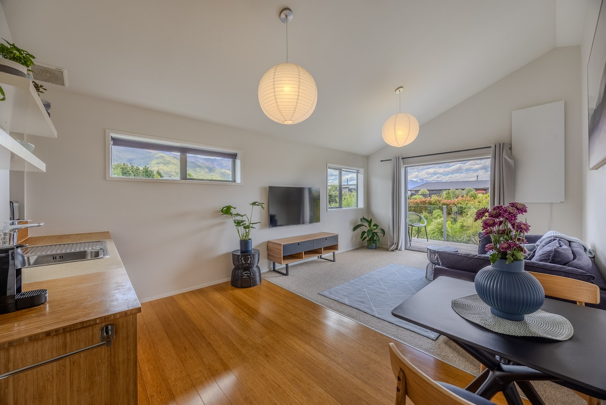 Questo elegante alloggio con 1 letto è perfetto per i viaggiatori. Ha un bellissimo sole da mattina a metà pomeriggio. Situato su 1 ettaro, a 3 km dal lungolago di Wanaka. Cortile privato recintato con barbecue, tavolo e sedie all'aperto. Angolo cottura con frigorifero, lavello, forno a microonde, padella elettrica e macchina del caffè. Tavolo da pranzo, divano in pelle, smart TV, pompa di calore. Letto matrimoniale. Bagno con wc, doccia, scalda asciugamani, termoventilatore, asciugacapelli. La casa separata del proprietario si trova a 30 metri dal B&B e ospita una femmina di barboncino di 4 anni.