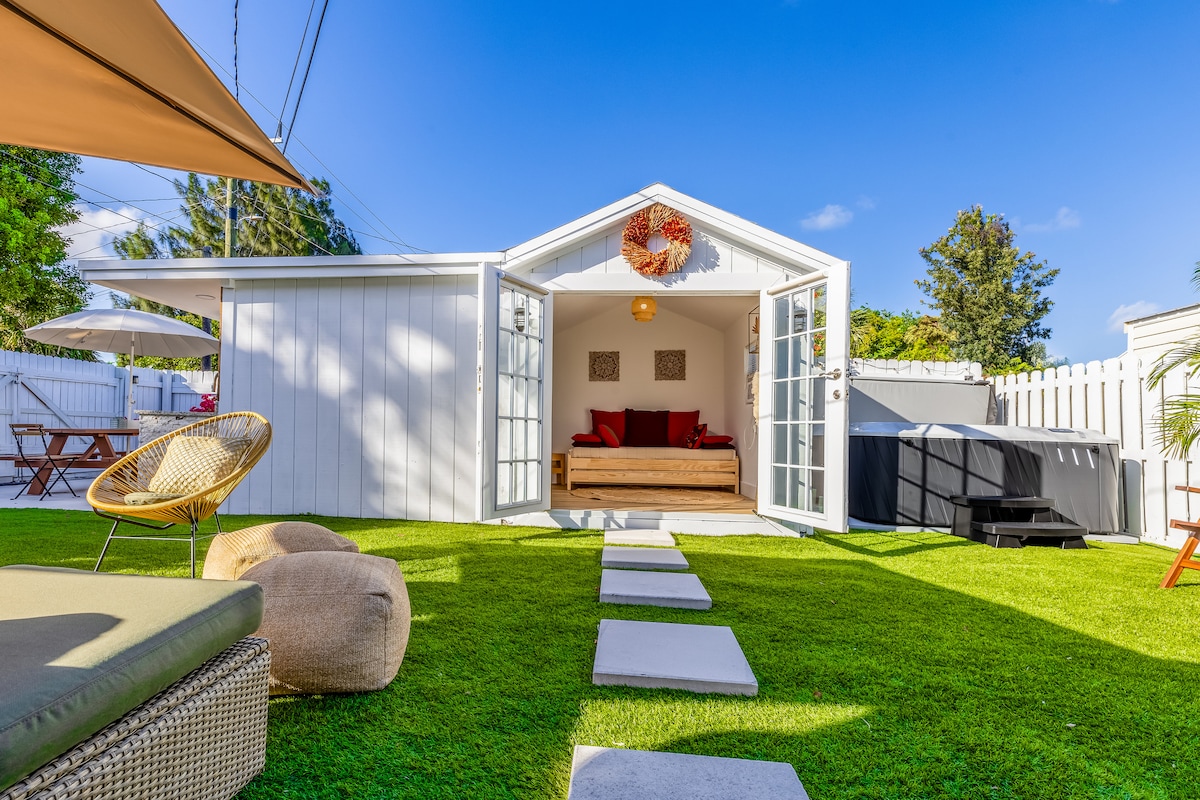 Hai bisogno di una vacanza? Amache, vasca idromassaggio e relax! Affitterai la pensione privata situata in una splendida proprietà a pochi minuti dal centro di West Palm, dalla spiaggia e dall'aeroporto. Cottage recentemente ristrutturato con ampio armadio Vasca idromassaggio e cortile condivisi Smart TV con wifi Frigorifero Tostapane e piastra riscaldante Forno a microonde Sapone e prodotti per la cura dei capelli Asciugamani puliti Ingresso privato con parcheggio gratuito non in strada