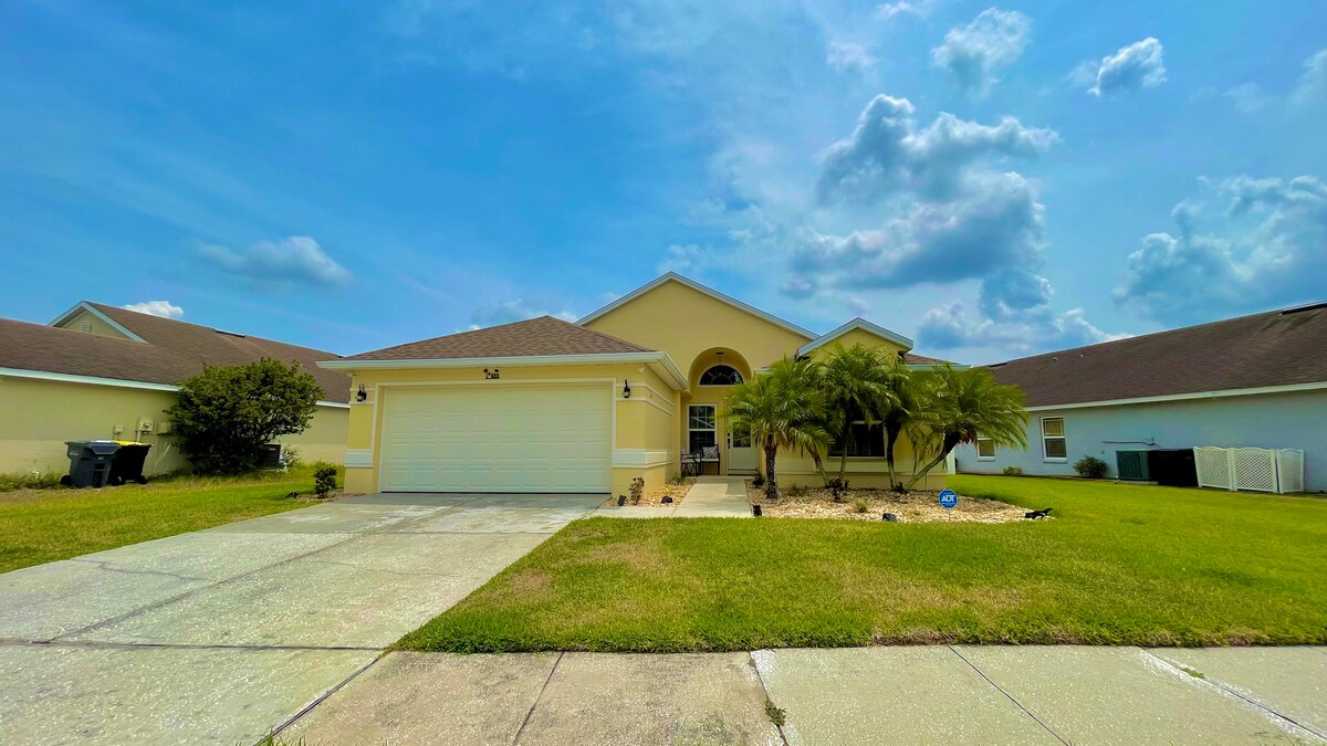 This sunny single-story home has 4 beautiful bedrooms, 2 full bathrooms, new AC system, fully stocked kitchen, and private screened freshwater pool. Perfect for families or groups, it accommodates up to 8 guests. Just minutes from DisneyWorld, Universal Studios, SeaWorld, Legoland, and Orlando’s top attractions. Conveniently located close to restaurants and shopping, this non-smoking house is nestled in a peaceful and secure resort, offering all the comforts of a "home away from home" vacation.