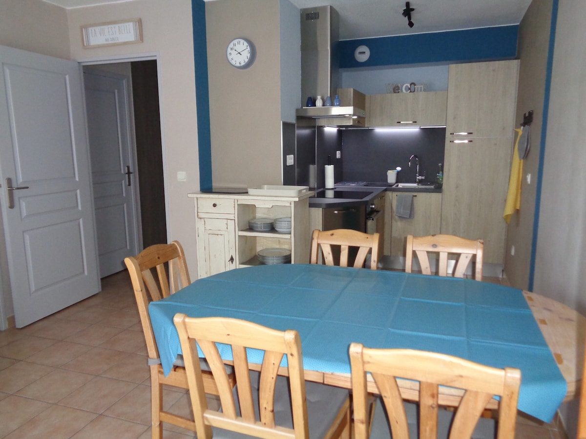 Piccola residenza di 6 appartamenti. L'appartamento n° 4 si trova al 1 ° piano. Soggiorno completamente attrezzato, frigorifero/congelatore, lavatrice, forno, piano cottura in vetroceramica, forno a microonde ecc. molti ripostigli. Divano letto, TV, lettore DVD. WiFi. Una stanza con un letto da 140, armadio. SdB/WC.