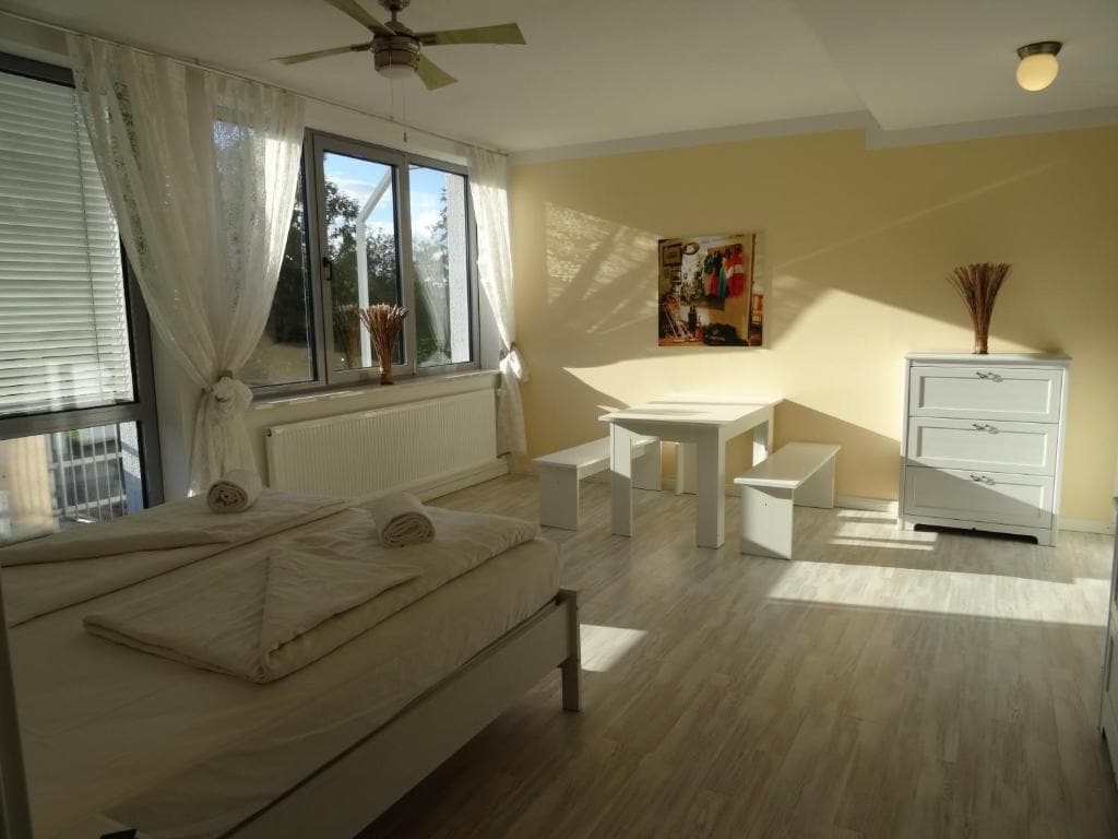 Fresco, moderno e accogliente: il nostro nuovissimo condominio a Unterschleissheim offre unità abitative moderne e confortevoli per due persone ciascuna. Ogni appartamento è completamente attrezzato con doccia privata, wc e cucina, in modo da poter godere della privacy e del comfort di una casa propria. La posizione tranquilla e le attrezzature di alta qualità rendono l'hotel la sistemazione ideale