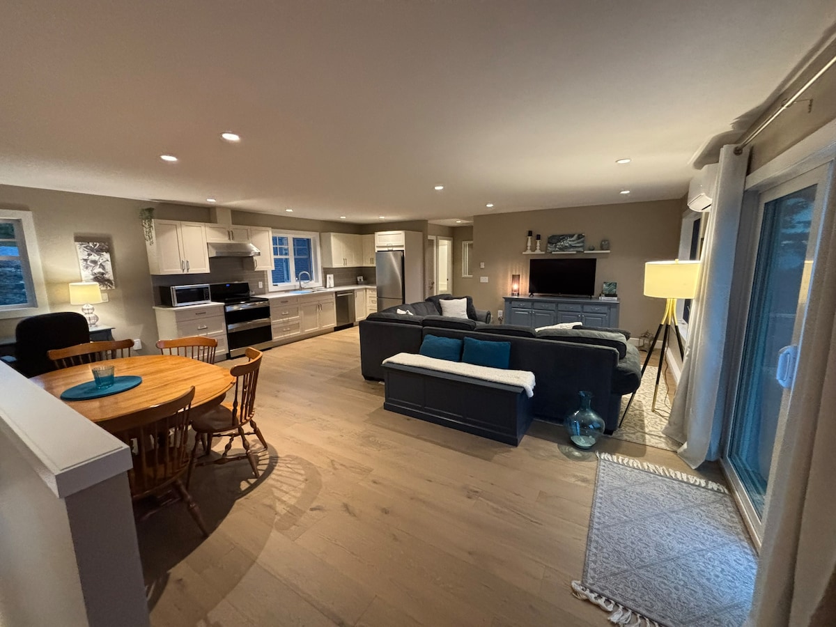La nostra suite è uno splendido rifugio con una camera da letto di nuova costruzione, caratterizzato da un soffitto alto 2,7 metri e da un ampio spazio di 75 metri quadrati. Dispone di una smart TV da 58" e di una cucina completamente attrezzata, per garantirti uno stile di vita di alta qualità durante i tuoi viaggi. Goditi l'alba e il tramonto mozzafiato dal balcone privato, con una magnifica vista sull'oceano e sulle montagne attraverso lo Stretto della Georgia. Situata in posizione strategica, la nostra suite è una base ideale per scoprire il fascino dell'isola di Vancouver.