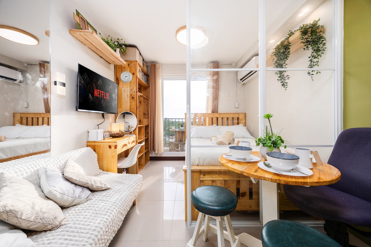 Rilassati e rilassati in questo monolocale tranquillo ed elegante vicino all'aeroporto internazionale di Mactan-Cebu! Inclusioni: - Libero accesso alla piscina e alla palestra - Asciugamani e articoli da bagno - Caffè in omaggio - Asciugacapelli - Ferro da stiro - Biancheria da letto aggiuntiva (su richiesta) - Wi-Fi Informazioni sul nostro spazio: - Si accettano animali domestici. - 32 mq con balcone fronte piscina - Letto a due piazze con 2 prese da comodino - Scrivania - Doccia calda e fredda. - Zona pranzo - Smart TV con Netflix - Armadio - Cucina - Lavatrice