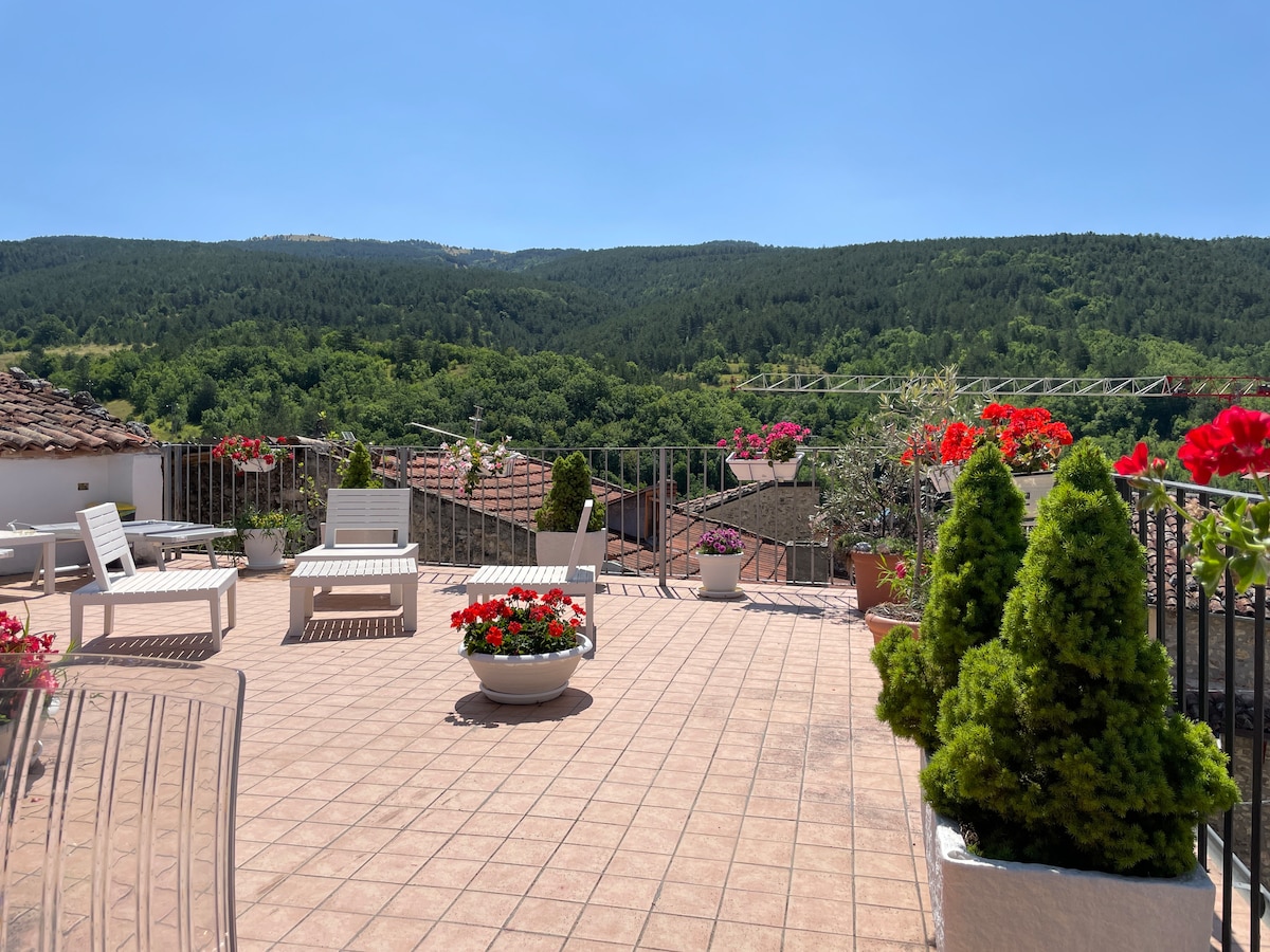 Gorgeous house with vaulted ceilings, original stonework, terracotta floors, a cosy open fire, large kitchen that opens to the sunny garden and its delightful view, and perfect proximity to national parks, mountains, lakes and excellent restaurants.
