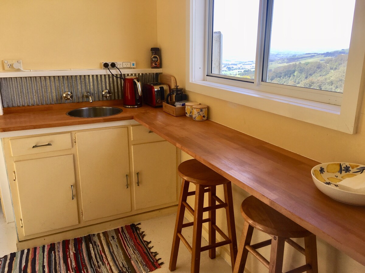 Cottage e monolocale Kookaburra a Mount Worth Strezlecki Hills, Gippsland occidentale Incantevole cottage rurale con 2 camere da letto (4 persone), più splendido monolocale adiacente con 1 camera da letto/bagno (2 persone, a un costo aggiuntivo), se necessario. Arroccato sopra splendide viste su boschi, valli, fattorie e montagne, e a solo un'ora e mezza da Melbourne via Warragul, il nostro rifugio cottage di campagna recentemente ristrutturato con un'enorme nuova terrazza è la perfetta fuga privata e tranquilla per una coppia romantica, una famiglia allargata o un piccolo gruppo di amici.