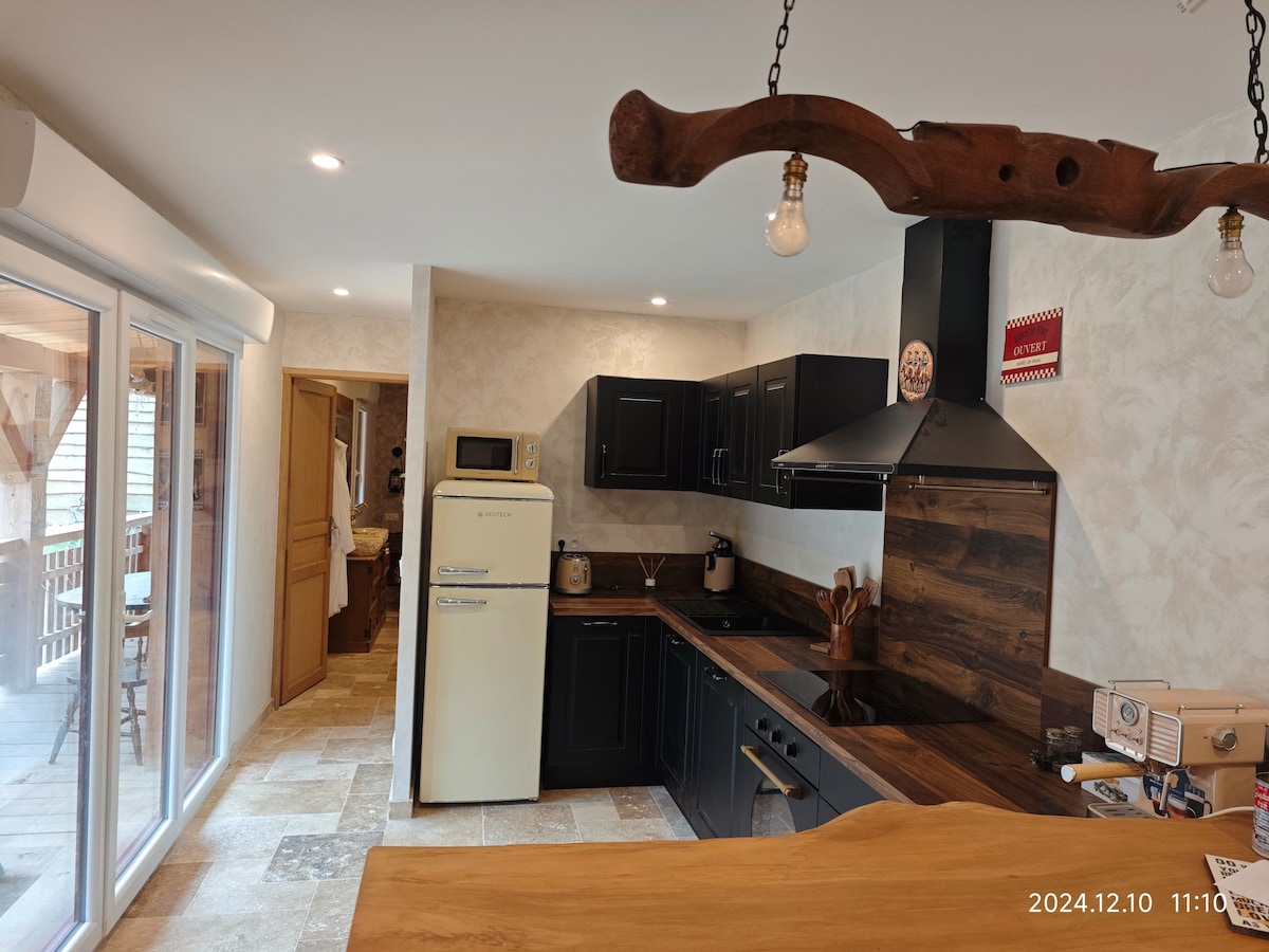 Appartamento T2 ristrutturato di 60m2 Dotazioni dell'alloggio: - vasca idromassaggio idromassaggio 2 posti - TV in camera da letto che scende dal soffitto - scaldasalviette - letto 140 con biancheria da letto premium - divano letto 140 (a doghe) in soggiorno - cucina attrezzata - aria condizionata reversibile - biancheria da letto, asciugamani da bagno, prodotti per l'igiene - terrazza in legno di 14m2 con sedia a dondolo, tavolo e sedie per la colazione guardando i cavalli - parco giochi esterno