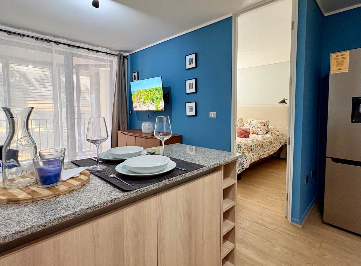 Goditi il comfort e lo stile di questo appartamento completamente attrezzato, in posizione strategica con accesso ad Av. Picarte e Costanera, a pochi minuti dal centro di Valdivia. - Soggiorno-pranzo - Cucina completamente attrezzata: forno elettrico, cappa, forno a microonde, lavastoviglie, frigorifero, bollitore, tostapane, macchina per il caffè e frullatore. - Bagno con riscaldatore elettrico, ferro da stiro, asciugacapelli e asciugamani - Una camera con letto matrimoniale. - Terrace - WiFi 800 Mbps - Parcheggio sul tetto all'interno del palazzo.