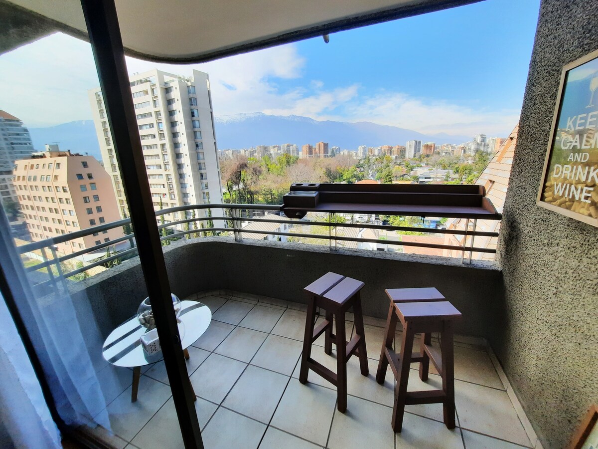 Un appartamento comodo e funzionale situato in una zona eccellente, ideale per un massimo di 3 persone. Dispone di 2 camere da letto, un soggiorno, una sala da pranzo e un angolo cottura, con spazi ben distribuiti e una piacevole vista sulla catena montuosa dal 6° piano. Include parcheggio privato e chiave digitale per l'accesso autonomo. Dispone di lavatrice. Lo stabile è dotato di 2 piscine. Situato a pochi passi dal centro commerciale Parque Arauco, da supermercati, ristoranti e dal Parque Araucano, e molto vicino alla Clínica Alemana. Zona sicura.