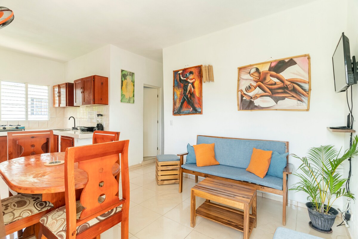 Appartamento fronte mare situato sulla bellissima Playa Punta Popy. Appartamento con 1 camera da letto completamente ristrutturato, con divano letto per ospitare 4 persone, se necessario. I servizi includono la sicurezza 24 ore su 24... a pochi passi da due piscine all'interno del complesso e dalla spiaggia e dall'oceano. Ristoranti e bar sono disponibili appena fuori dal complesso, mentre in soli 20 minuti a piedi si raggiunge il centro, con i suoi negozi e la vita notturna. Noleggio di quad e kayak in loco. Si parla inglese, spagnolo e francese