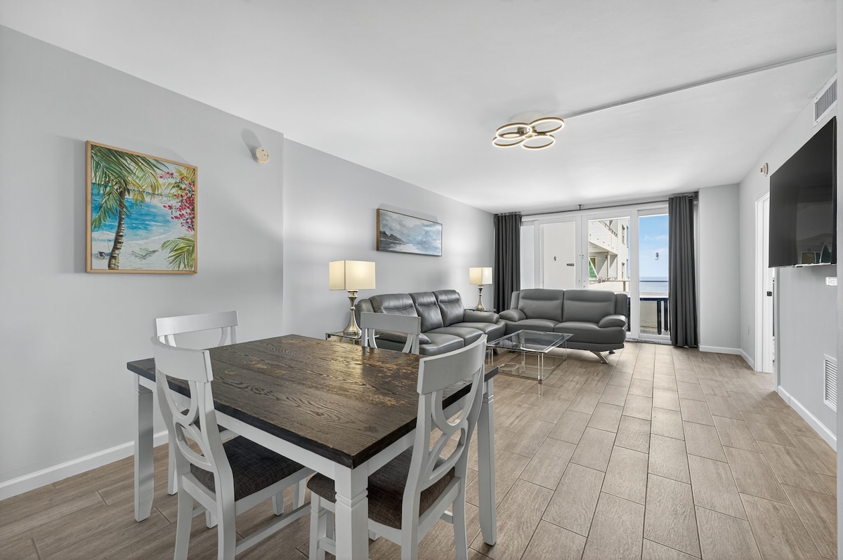 Enjoy a spacious 1-bedroom apartment with direct access to a shared heated pool on the same level. The apartment features a king-size bed, in-unit washer and dryer, dishwasher, fully equipped kitchen, and provides one set of towels per guest, along with beach towels and chairs. Stay connected with high-speed internet and a smart TV. Please Note: A $25 /day pool fee applies from November 1st to April 30th. one small dog( up to 15 Ib) is allowed, extra charge for shedding dogs.