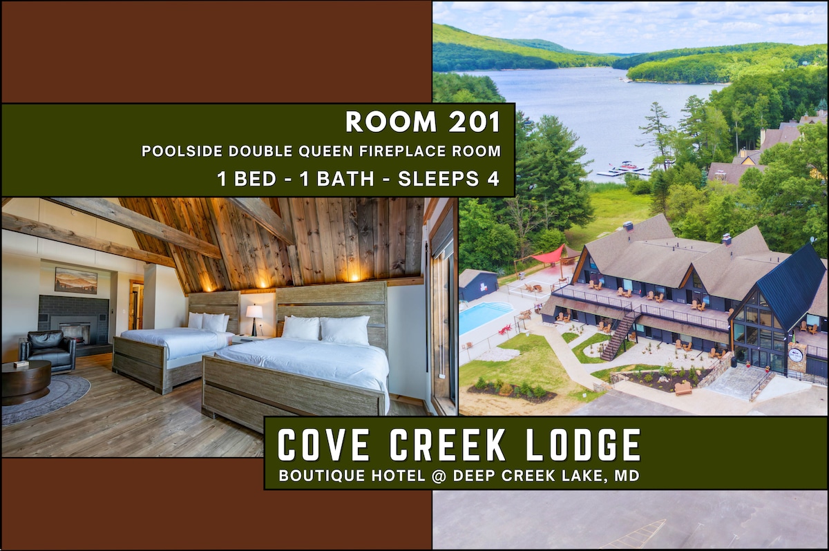 Cove Creek Lodge: 201 a bordo piscina con 2 letti queen-size e camino