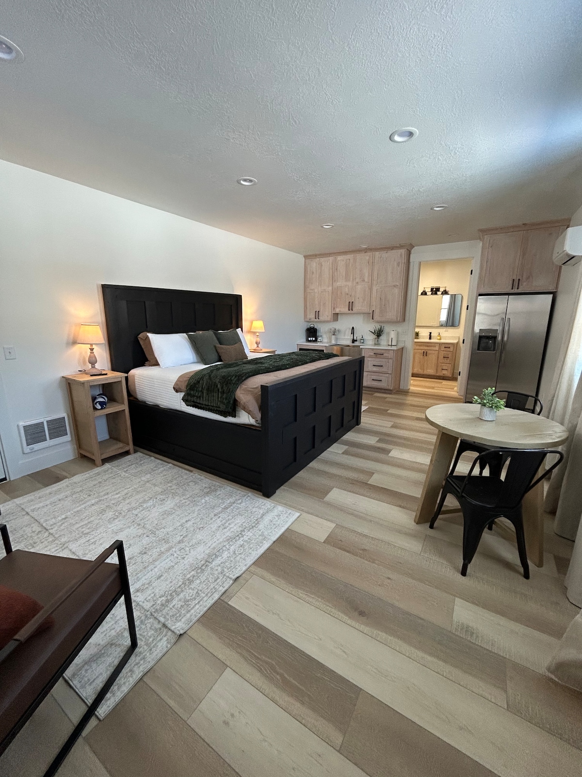 This stylish, newly built studio is ideal for your Lava Hot Springs getaway. Featuring a king-size bed and full kitchen, the ground-level apartment is located next to the Lava Campgrounds Office—perfect for guests who want to stay near camping family while enjoying home comforts. Minutes from the hot pools, with trail access to town, river, and playground. No pets or smoking. Four-wheel drive recommended in winter.
