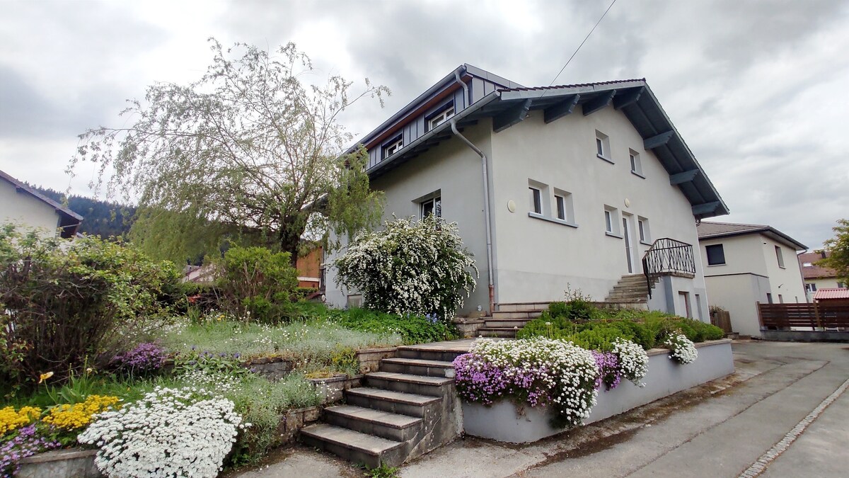 La nostra famiglia vi accoglie nel nostro chalet. L'alloggio completo si trova al piano terra. Lo chalet si trova in una strada senza sbocco: traffico minimo e massima tranquillità. L'alloggio è accogliente e dotato di sauna. La casa si trova nel villaggio di Les Gras a 2-3 minuti a piedi da un minimarket. Posizione ideale per visitare la zona. Partenza per escursioni dal villaggio. Piste di sci di fondo e circuito con le racchette da neve. Mountain bike. GTJ. Molto vicino alla Svizzera.