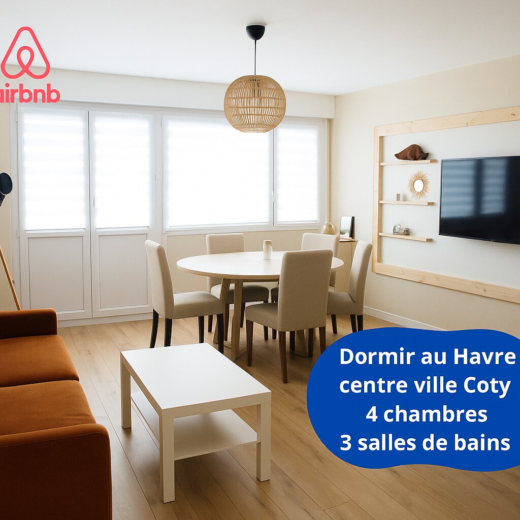 Benvenuti alla Porte Océane, Questo alloggio può ospitare 6 persone + un bambino. Nessun costo di pulizia 🥇A due passi dal centro commerciale Les Docks Vauban, a 5 minuti dal centro della città e a 10 minuti dalla spiaggia. Vi troverete nel cuore di Le Havre in un appartamento tranquillo. Inoltre, è possibile raggiungere facilmente Honfleur, Deauville ed Etretat. L'appartamento dispone di due camere da letto con un letto matrimoniale + un divano letto nel soggiorno. 3 televisori in totale. Non c'è Wi-Fi