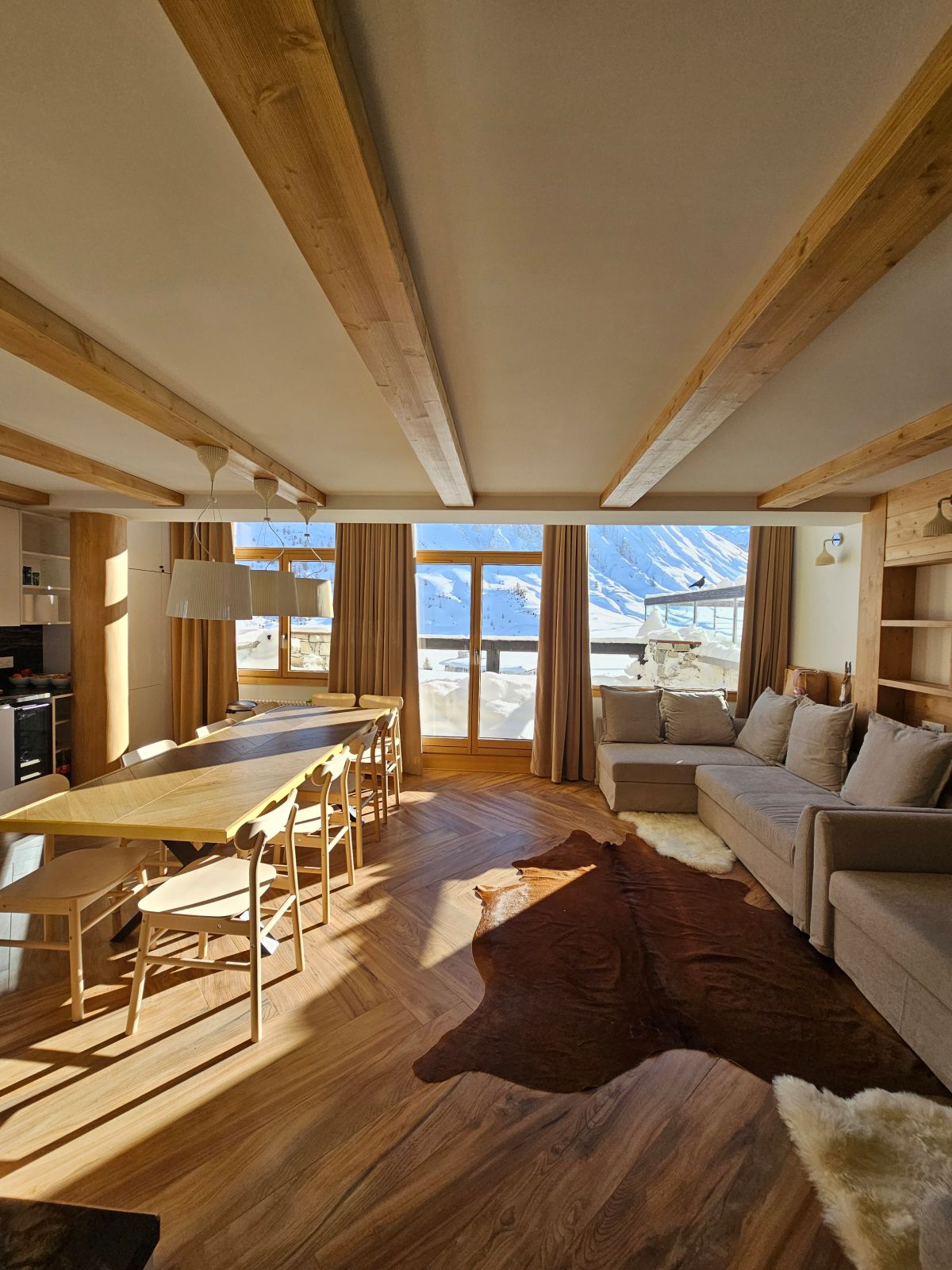 La fuga alpina ridefinita: Benvenuti nel nostro appartamento eccezionale di 140 mq completamente ristrutturato e trasformato per un'atmosfera avvolgente; Situato a Tignes le lac, apprezzerete la sua partenza sci ai piedi, è il luogo ideale per tutte le vostre avventure. Questo spazioso alloggio in stile chalet moderno è stato progettato per ospitare comodamente fino a 12 persone e offrire a ciascuno il proprio spazio privato. Il suo vantaggio unico: SAUNA PRIVATA/Pasto pronto al vostro arrivo