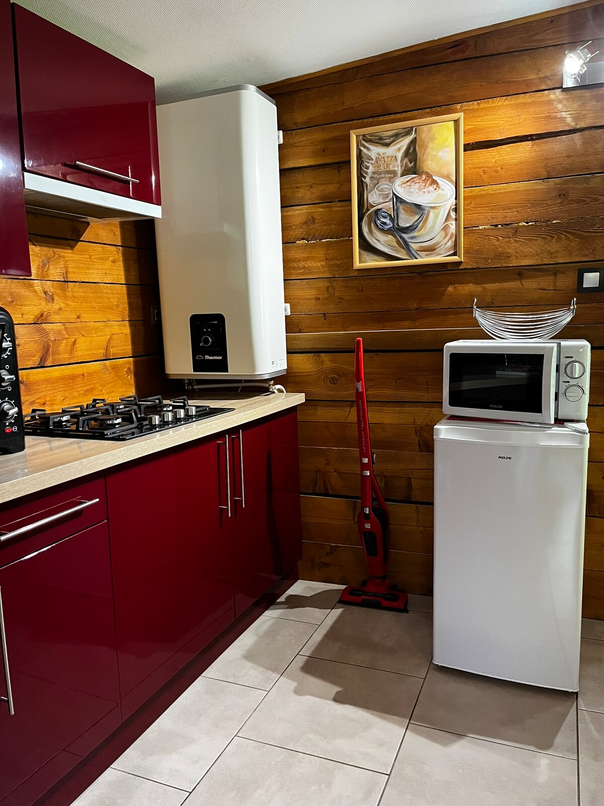 Grazioso appartamento con tutti i comfort di 65 mq su due piani in un piccolo villaggio tranquillo Cucina completamente attrezzata: forno, frigorifero, macchina per il caffè, stoviglie e zona pranzo Zona giorno con divano letto per due persone Al piano superiore, bagno con doccia con doppio lavabo WC separato Camera con letto per 2 persone, possibilità di aggiungere un letto pieghevole per una persona o lettino per bambini (fornito) Esterni in comune con i proprietari con salotto da giardino e ombrellone Aria condizionata Parcheggio privato, garage per moto