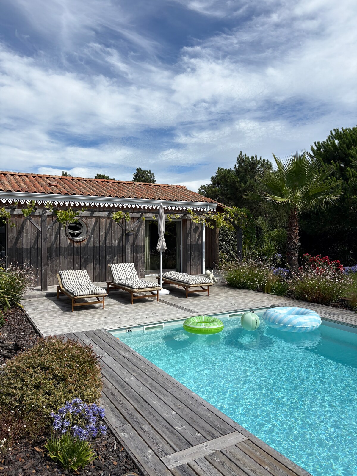 Villa de standing à Lège-Cap Ferret pour 10 personnes avec 4 chambres, 3 salles de bain, piscine privée, cuisine d’été, terrasse et jardin arboré. Confort, élégance et calme , pistes cyclables, plages a proximités ,commerces et restaurants. Idéal pour un séjour en famille . Linge, ménage, Wi-Fi et parking inclus pour un séjour sans souci.