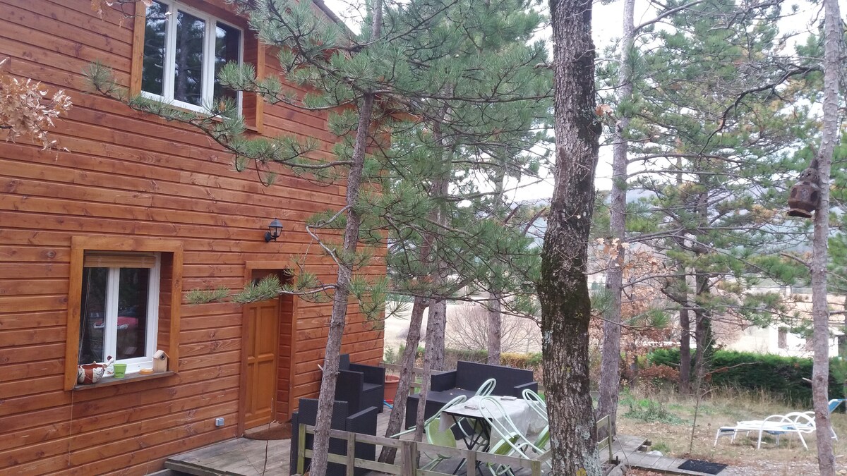 Accogliente cottage in una casa di legno per 4 persone. Giardino e terrazza arredati con salotto, tavolo e sedie al sole della Provenza. A circa 20 minuti a piedi dal centro di Dieulefit e vicino a vari divertimenti e passeggiate. simpatici animali in loco: galline, conigli, gatti, cani e talvolta cavalli! Pulizia non inclusa.